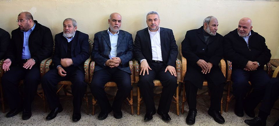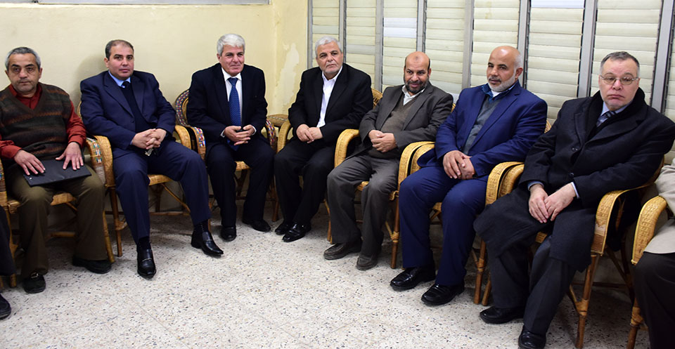 د. زياد شعت، د. زكريا الأغا، أ. إسماعيل هنية(نائب رئيس المكتب السياسي)، الوزير محمد رمضان الأغا، م. عماد العلمي
