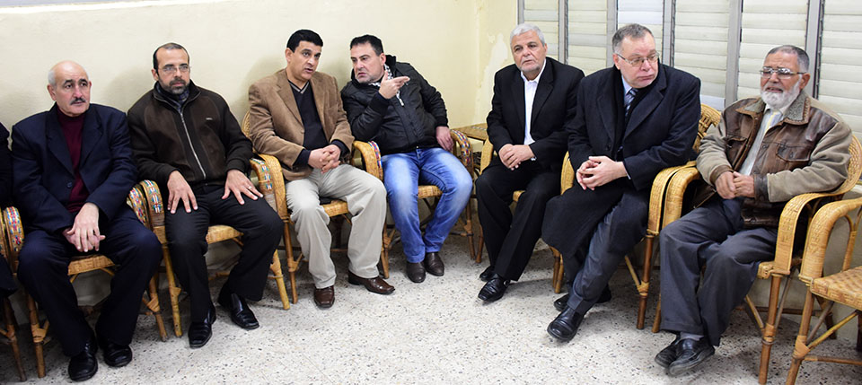 الوزير محمد رمضان، أ. توفيق أبو نعيم، أ. كامل ماضي، د. سلام زكريا وشقيقه م. محمد، د. ناصر جاسر
