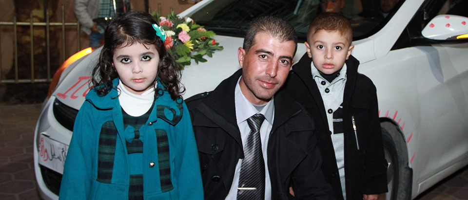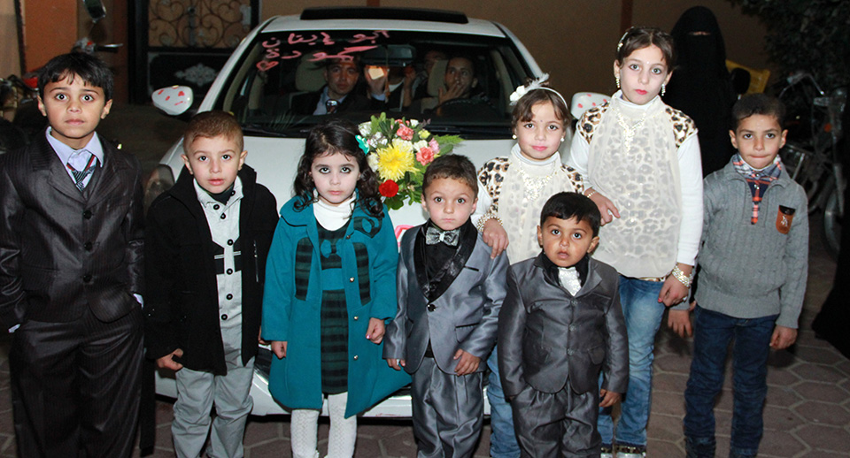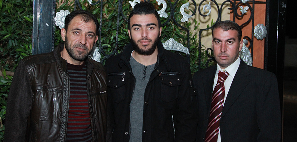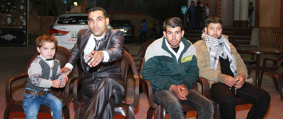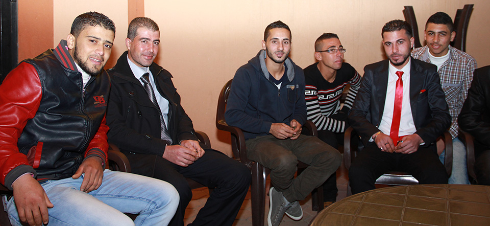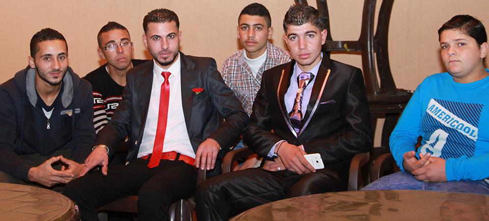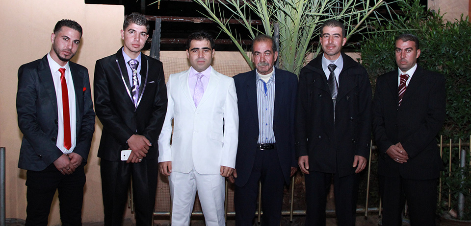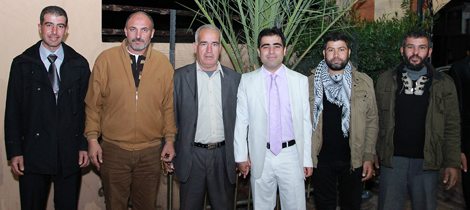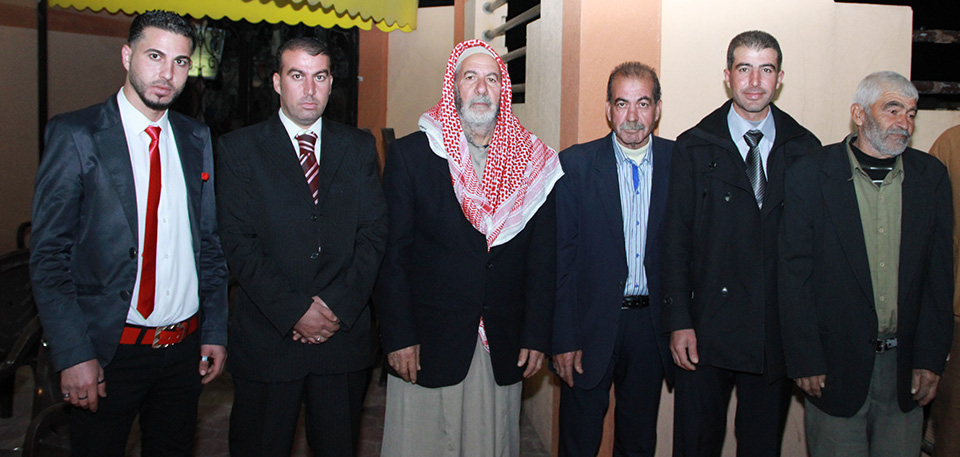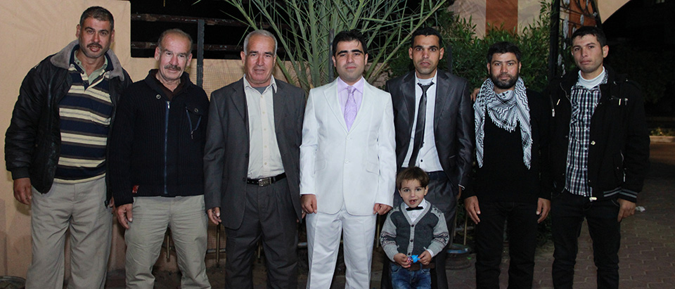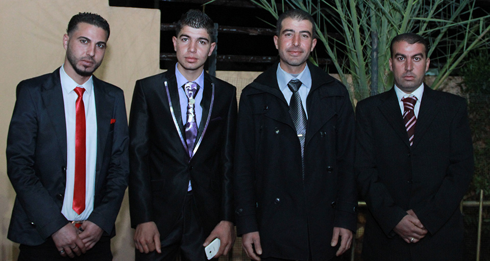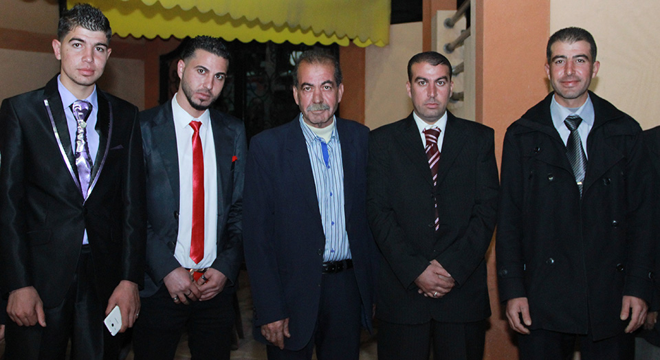 الحاج عاشور محمد الأغا(عم العروس)، سامر(شقيق العروس)، والد العروس وشقيقه الحاج صدقي، محمد وشقيقه ساهر