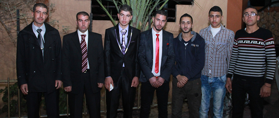 حذيفة محمد الأسطل، حاتم جود الأسطل، محمد يوسف الأسطل ونجله يوسف، العريس، ووالده وعمه السيد محيى الدين، السيد مجدي مصطفى الأسطل