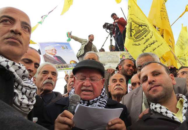امام هذه السياسات العنصرية والاستيطانية والعقاب الجماعي وممارسة حرب الابادة بأبشع صورها عبر الاعدامات الميدانية لاطفالنا ونسائنا لم يكن امام القيادة الفلسطينية وامام حركنكم فتح سوى التصعيد على مختلف الجبهات السياسية والدبلوماسية والشعبية ضد الاحتلال الاسرائيلي وامام هذا الواقع نحن مقبلون على مطلع العام الجديد على خطوات حاسمة وجادة لمواجهة هذه التحديات المصيرية اولى هذه الخطوات تحديد العلاقة مع دولة الاحتلال ووقف التنسيق الامني مع الاستمرار والاصرار على التوجه الى مجلس الامن لتقديم مشروع قرار الاعتراف بدولة فلسطين على الاراضي المحتلة لعام 1967 وتحديد سقف زمني لانهاء الاحتلال ، رغم الضغوطات الهائلة على القيادة الفلسطينية لثنيها عن ذلك الا ان حركتكم فتح وقائدها العام الرئيس ابو مازن اعلنت موقفها ومعها فصائل منظمة التحرير برفض التهديدات والضغوطات وان الرئيس ابو مازن حامل الامانة مصر على خوص المعركة السياسية والدبلوماسية حتى النهاية لأنه لم يبقى شيء نخسره .