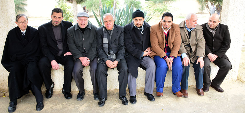 الشيخ محمد عبدالمعطي، الحاج كامل حافظ، المختار العم وديع، الوزير أ. سليم السقا وشقيقه أ. محمد، الحاج محمد طاهر، أ. حاسي أحمد