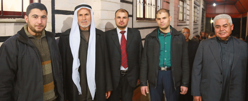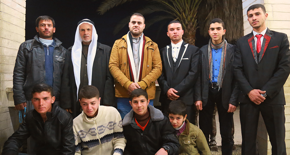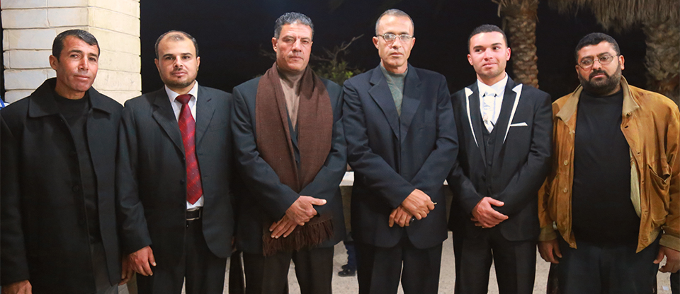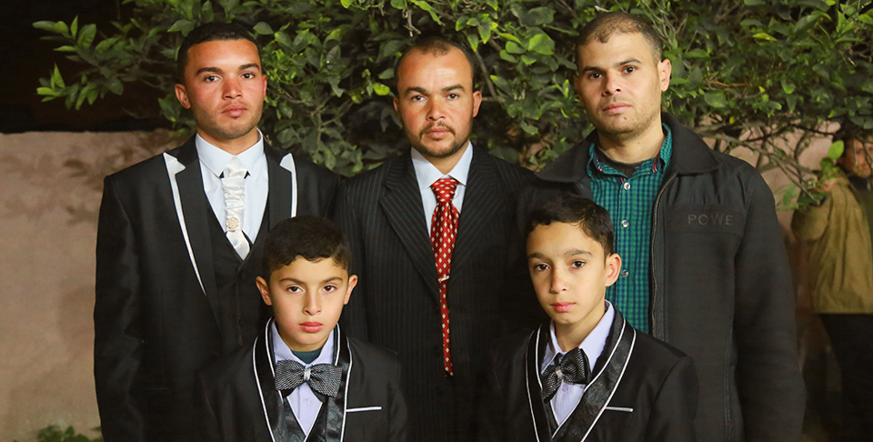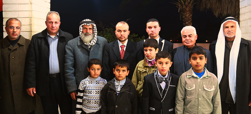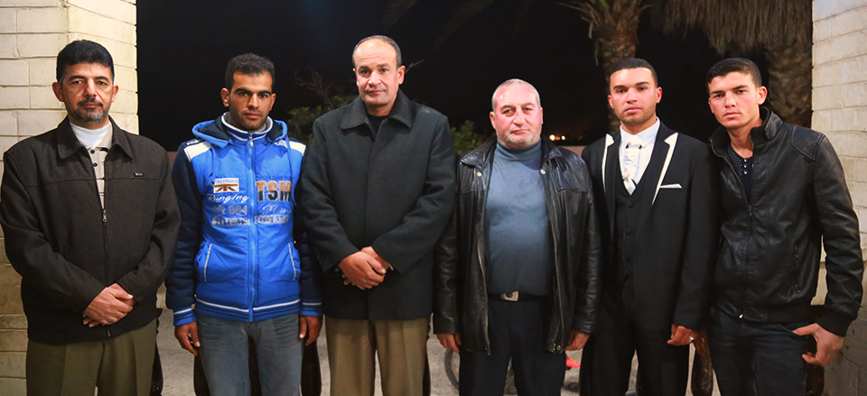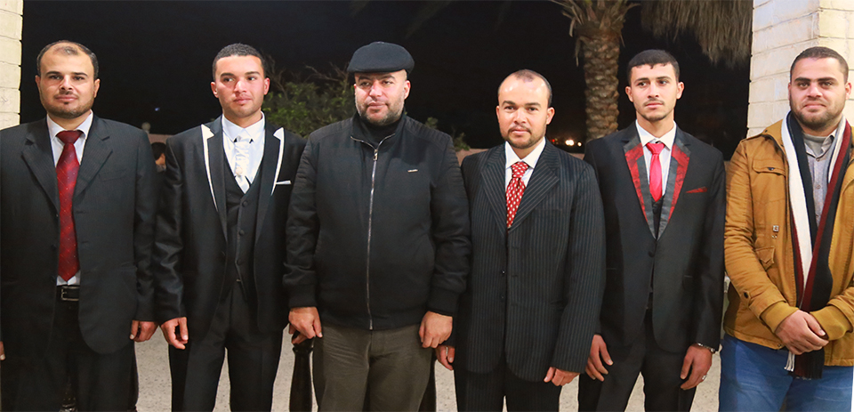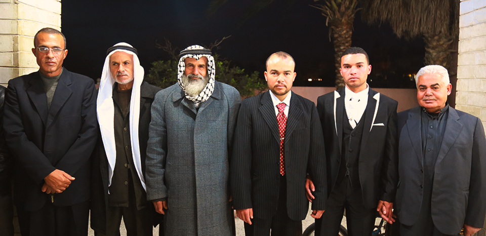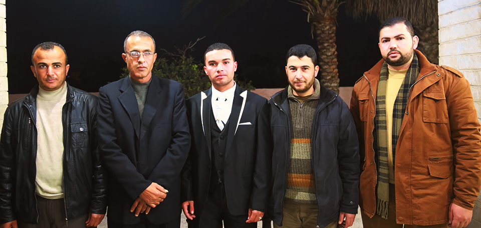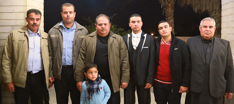 أ. محمد(عم العريس)، أ. سامي(والد العروس)، العريس، يحيى(شقيق العريس)، السيد مصطفى يوسف أ. عمار، السيد عمر يوسف