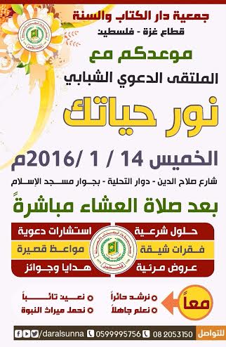 الرئيسة/متفرقات/دعوة لحضور الملتقى الدعوي الشبابي نور حياتك متفرقات دعوة لحضور الملتقى الدعوي الشبابي نور حياتك تاريخ النشر : الثلاثاء | 12-01-2016 | 17:28 6267 بسم الله الرحمن الرحيم يمكنك تلقي أحدث الأخبار أول بأول بانضمامك لإحدى مجموعات الواتساب الخاصة بالعائلة من خلال الضغط هنـا اظهر المزيد