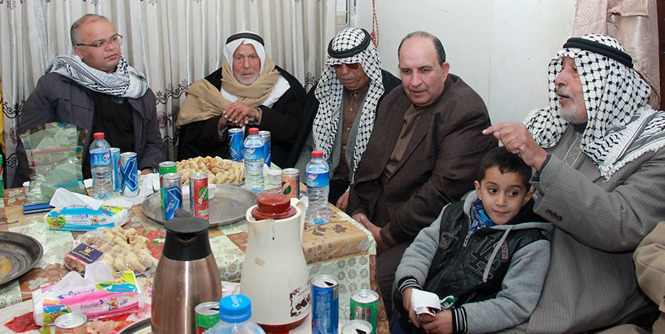 خان يونس- حي الأمل- منزل المختار أبومحمود عنابة- الثلاثاء 19-01-2016- إستقبل المختار أبومحمود عنابة، وفد من الطائفة البطريكية اللاتينية وسط حضور من الوجهاء والمخاتير ومحافظ خان يونس الدكتور أحمد الشيبي، وتأتي الزيارة في مقام تعزيز العلاقات بين المسلمين والمسيحيين.