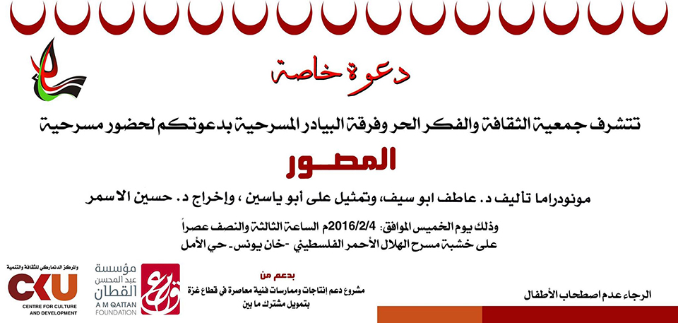 الرئيسة/متفرقات/دعوة لحضور مسرحية المصور متفرقات دعوة لحضور مسرحية المصور تاريخ النشر : الثلاثاء | 02-02-2016 | 15:35 9620 خان يونس- دعوة لحضور مسرحية المصور يمكنك تلقي أحدث الأخبار أول بأول بانضمامك لإحدى مجموعات الواتساب الخاصة بالعائلة من خلال الضغط هنـا اظهر المزيد