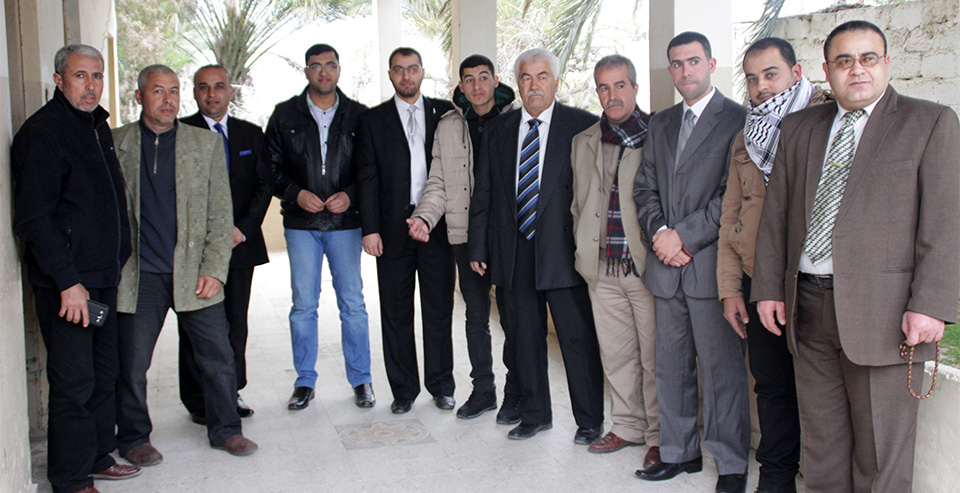 أ. محمد عودة الأغا، أ. خليل سلامة، أ. علاء يوسف الاغا، والد العريس، أ. أيمن أحمد الأغا