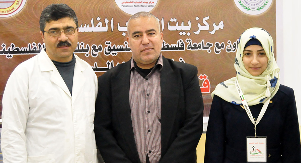 أٌ. دعاء ياسر رستم(نائب رئيس مجلس إدارة مركز بيت الشباب الفلسطيني)، أ. ياسر محمد الأغا(موقع النخلة)، د. سالم شبير(مدير جمعية بنك الدم الفلسطيني)