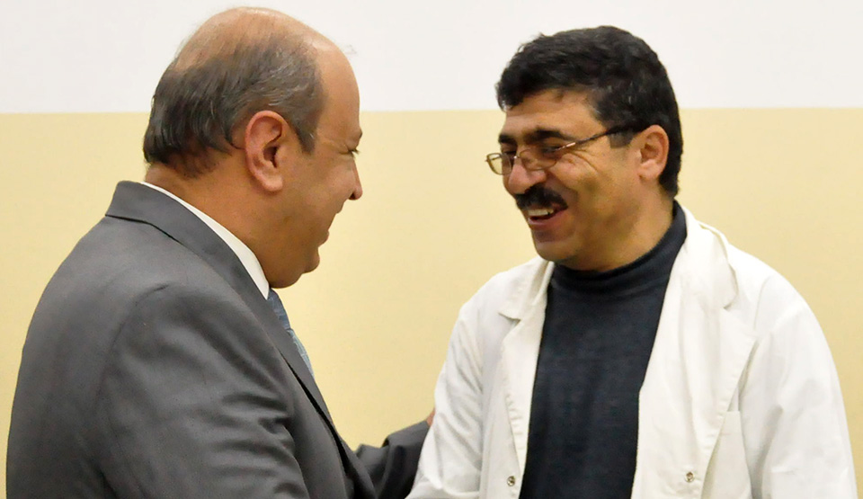 د. سالم شبير(مدير جمعية بنك الدم)، م. عماد خالد الأغا(رئيس مجلس إدارة جامعة فلسطين)