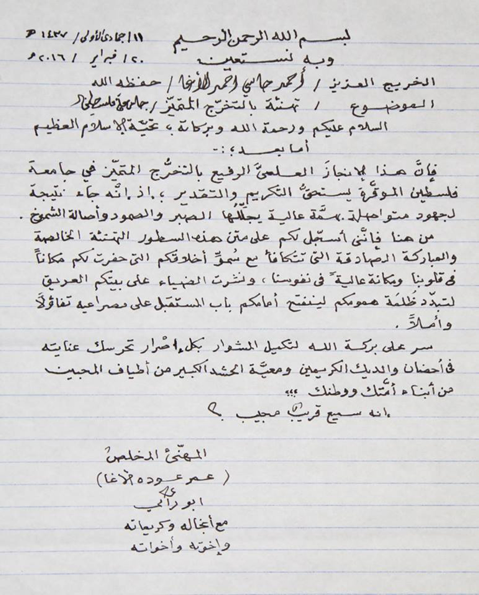 والدة الخريج، نضال احمد، الخريج، ا. عامر حمادة