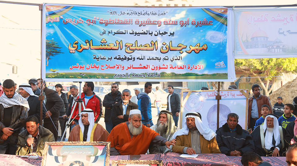 بفضل من الله تبارك وتعالى وفق الله الأخوة في مفوضية الإصلاح الوطنية بمحافظة خان يونس فتم الصلح بين كل من عشيرة ابوستة وعشيرة القطاطوة ال اخريس وذلك عصر يوم الجمعة 26-2-2016 بخان يونس وذلك على اثرحادث طرق أدى الى وفاة الطفل امير هاني ابو ستة.