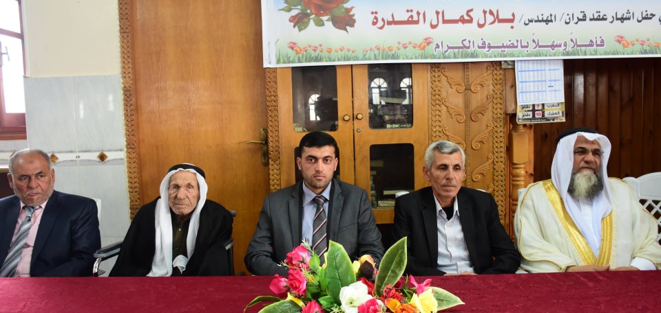 مسجد أم سالم- السطر الشرقي- خان يونس- السبت الموافق 27-02-2016 عقد قران م. بلال كمال محمود جندي حسان محيسن إرحيم القدرة الى صاحبة الصون والعفاف الآنسة ريم ارحيم القدرة(ابنة عمه)، والف مبارك