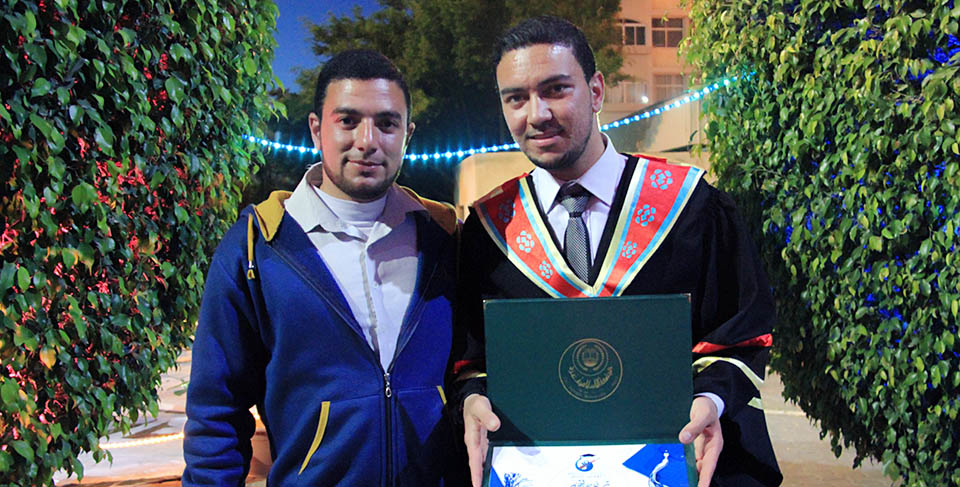 أ. د. علي حامد الأسطل ونجله الخريج خالد وأشقائه