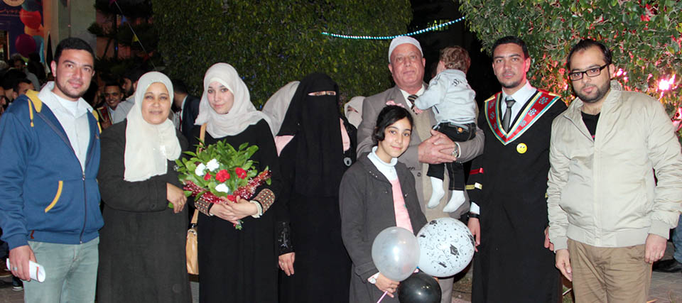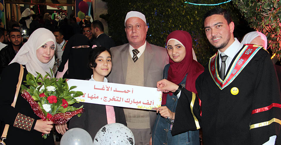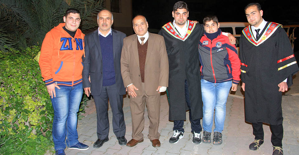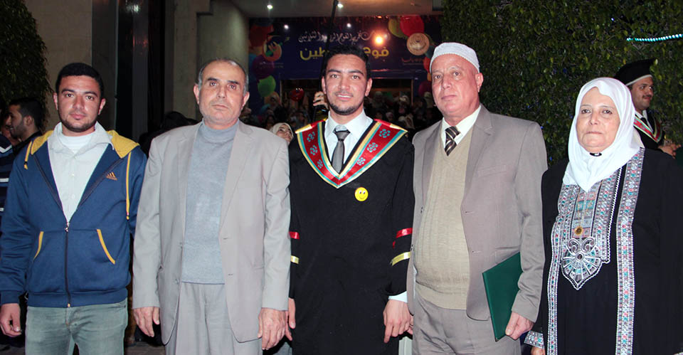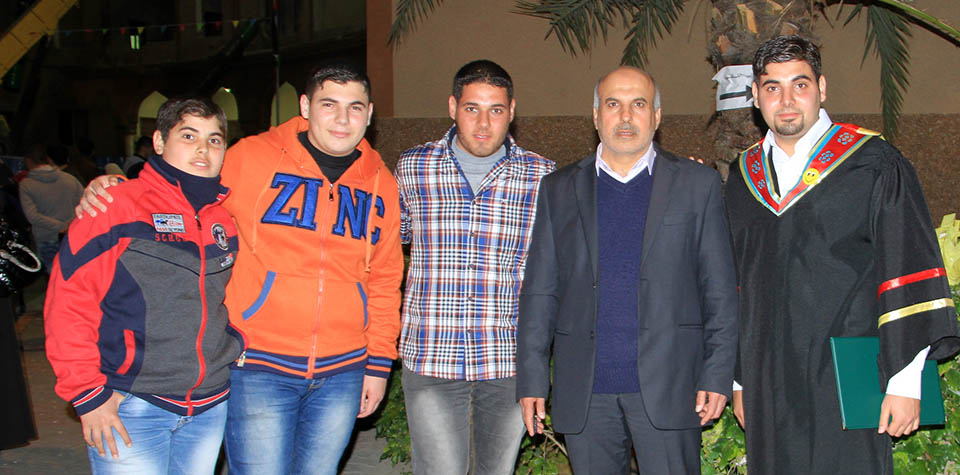 أ. محمد أحمد نايف الأغا(زوج شقيقة الخريج)، الخريج، والد الخريج وشقيقته، والد الخريج، شقيقة الخريج وخالته، أ. محمد