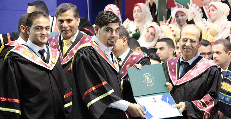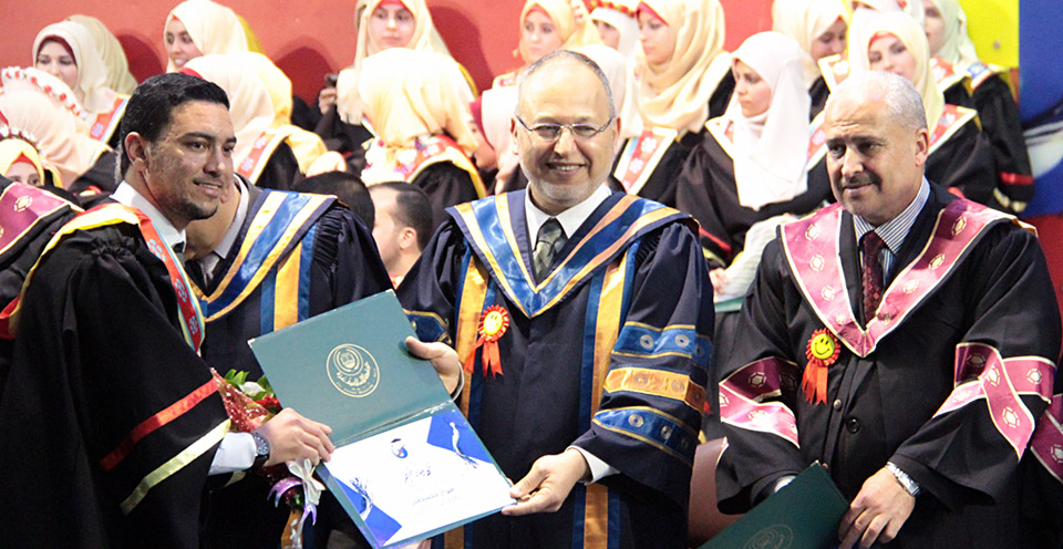 احتفلت الجامعة الإسلامية بتخريج دفعة جديدة من خريجي وخريجات الفوج الرابع والثلاثين "فوج فلسطين"، وذلك في كليات : الأداب، والعلوم، والتمريض، وحضر حفل التخريج الذي أقيم في قاعة المؤتمرات الكبرى اليوم الإثنين الموافق 29-02-2016 بمركز المؤتمرات بالجامعة الإسلامية الدكتور نصر الدين المزيني- رئيس مجلس الأمناء، وأعضاء مجلس الأمناء، والأستاذ الدكتور عادل عوض الله – رئيس الجامعة الإسلامية، وأعضاء مجلس الجامعة، والخريجون والخريجات، وذووهم.