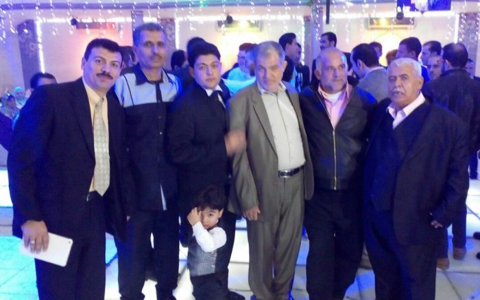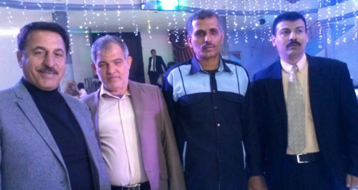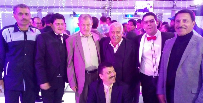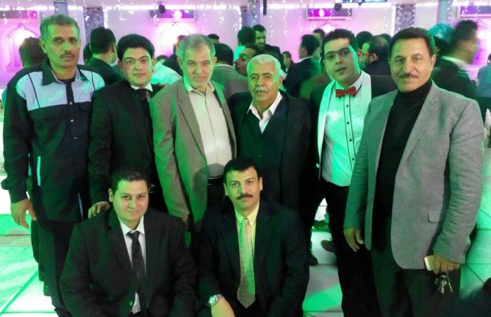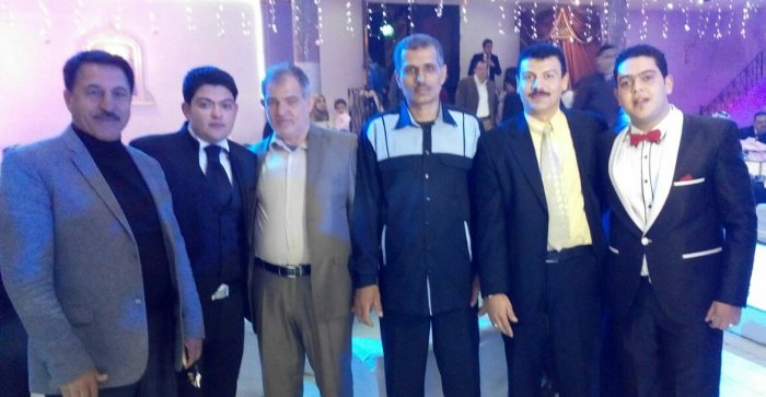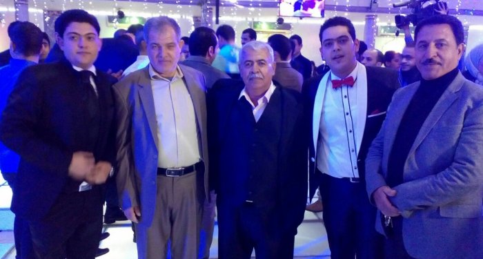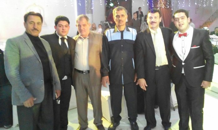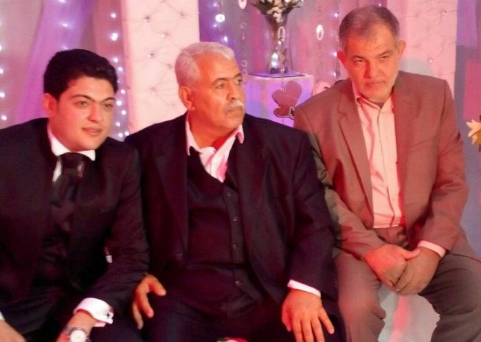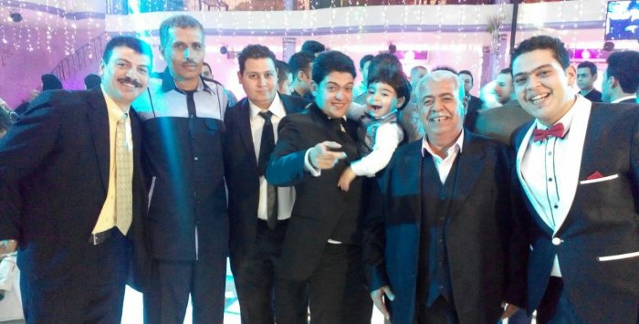 أ. حمدان حلمي الأغا، محمد(شقيق العريس)، والد العريس، أ. عدنان(والد العروس)، العريس، أ.نظير(عم العروسين)