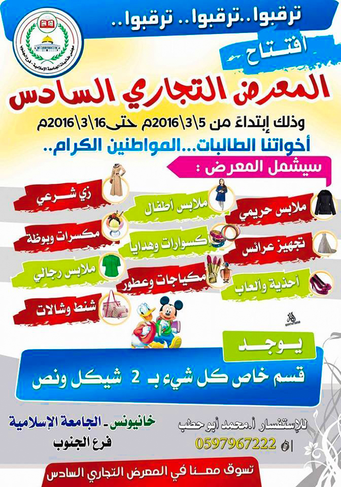 المعرض التجاري السادس على أرض الجامعة الإسلامية فرع الجنوب