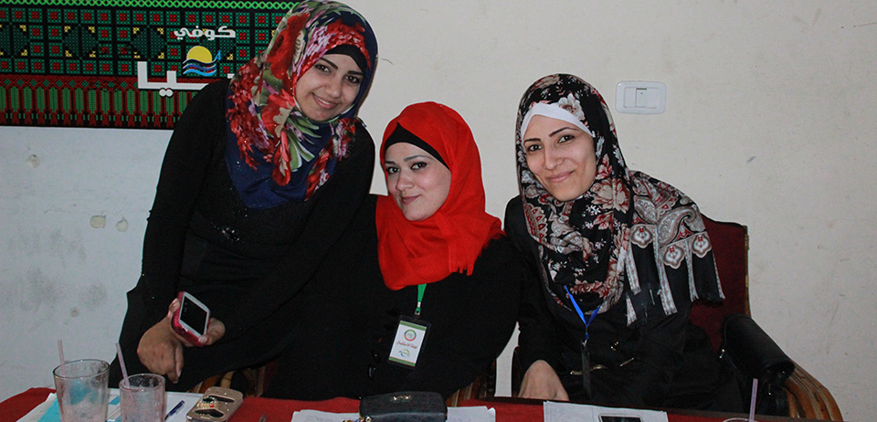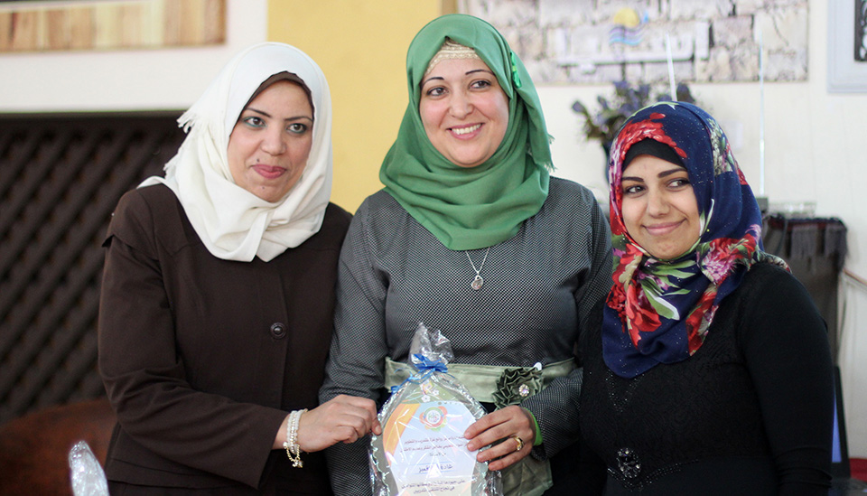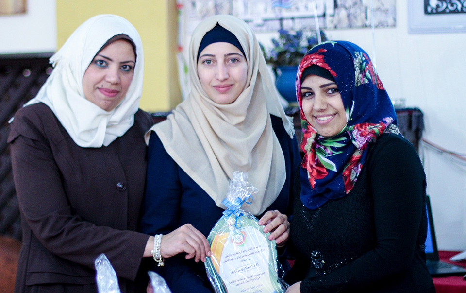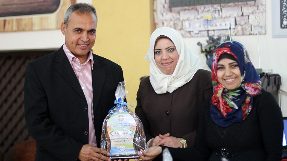 فريق مركز روائع غزة للتدريب والتطوير أ. ألاء أبوالخير، أ. مها إسماعيل قويدر، أ. إيمان مقداد (مديرة مركز روائع غزة للتدريب والتطوير)