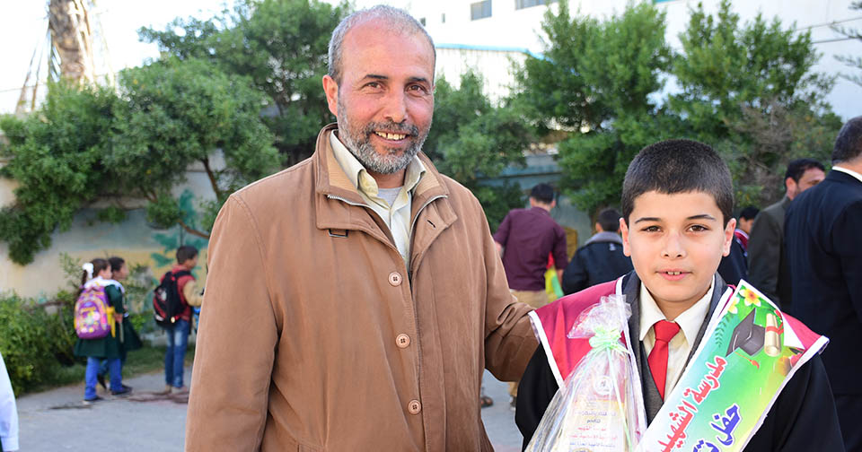 أ. يوسف قاسم ونجله عبدالرحمن (الأول على مدرسة الشهيد أبو حميد)، قاسم يوسف