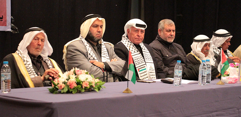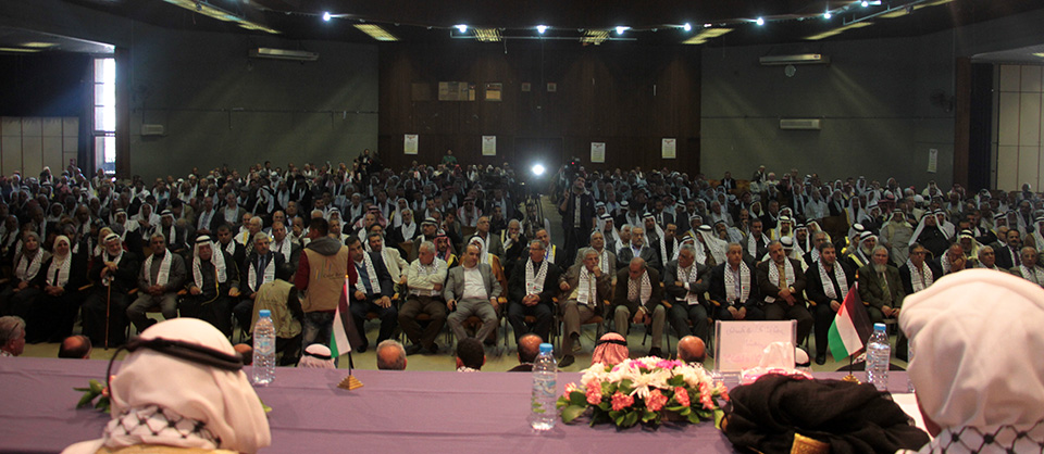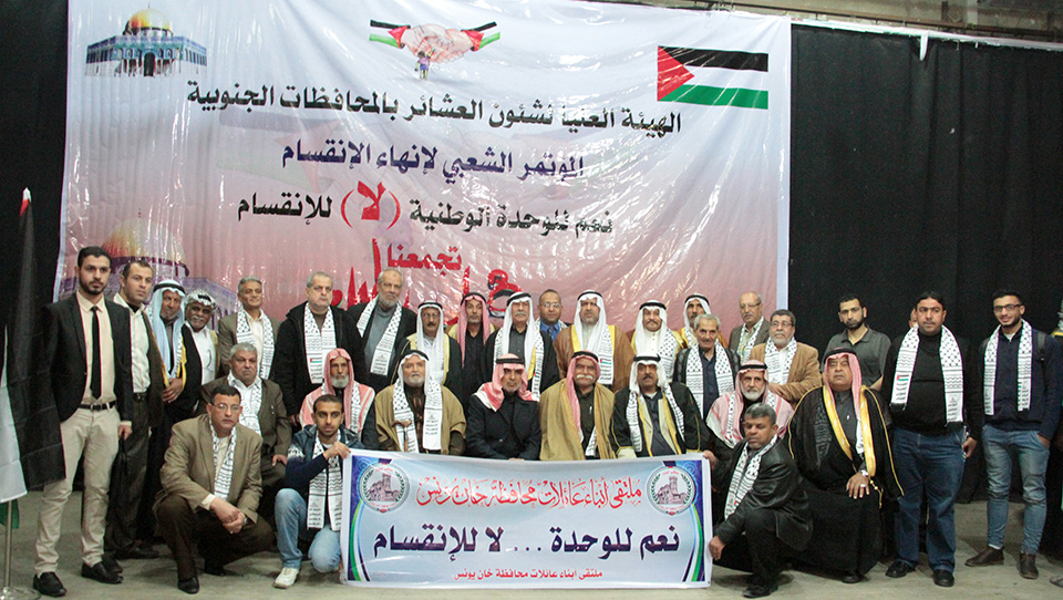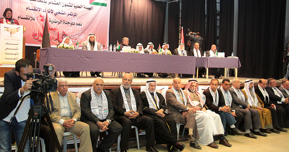 وفي كلمته دعى المختار سلمان المغني (رئيس المؤتمر) حركتي فتح وحماس لإنهاء الإنقسام، والتوحد تحت راية واحدة في فلسطين، فأصبح النسيج الإجتماعي بين أبناء الشعب الفلسطيني الواحد في حالة تمزق وانهيار، وأن البطالة في تزايد مستمر.
