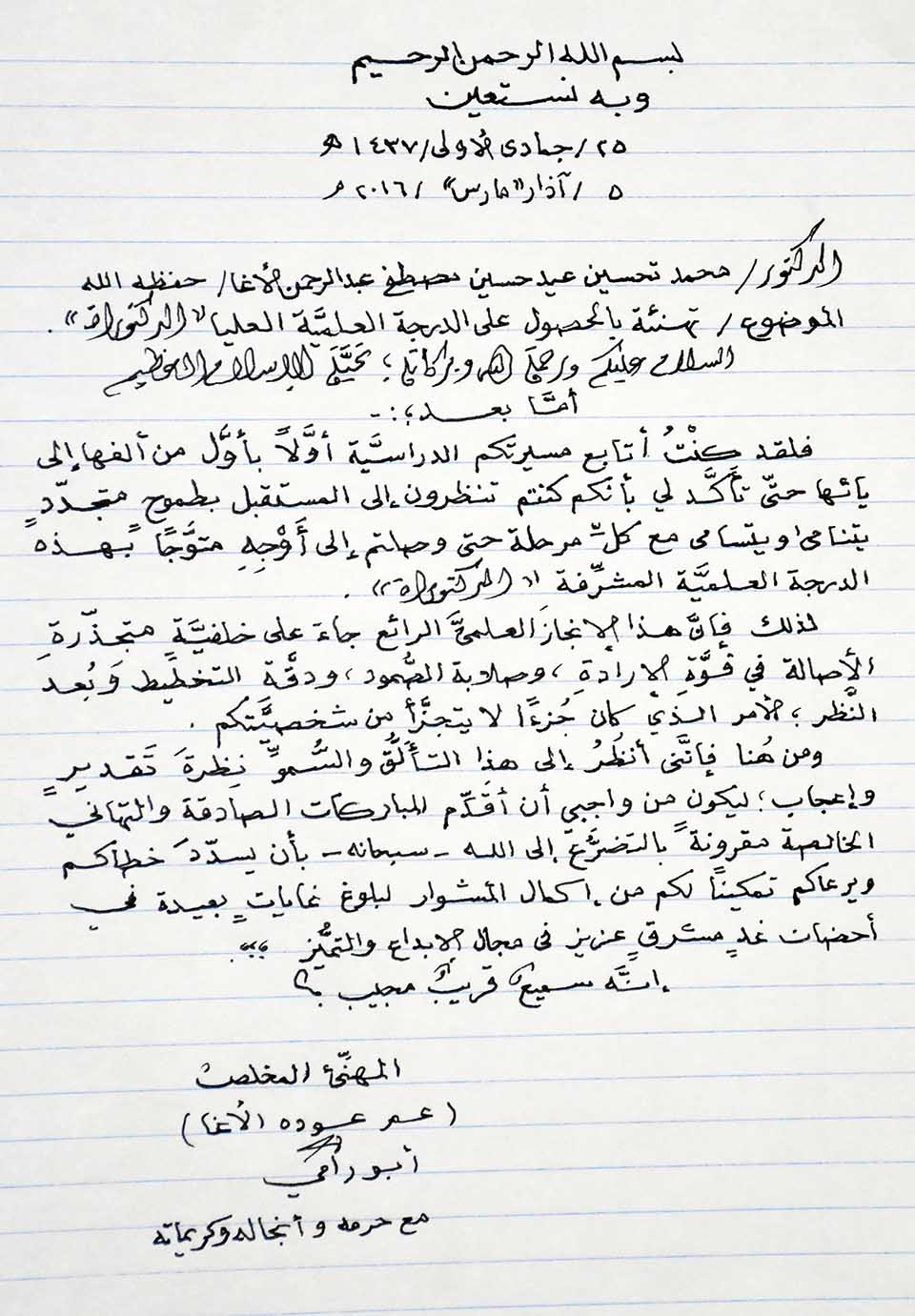 تهنئة مقدمة من أ. عمر عودة الأغا