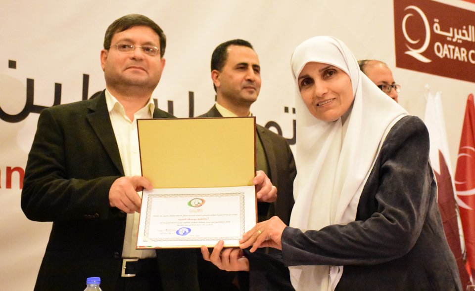 تكريم أ. بدر عاشور الاغا، د. سناء أبودقة(رئيس اللجنة العلمية للمؤتمر)