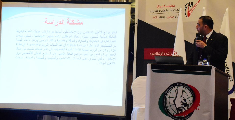 فندق المشتل- غزة- اختتمت فعاليات مؤتمر فلسطين الدولي الاول للجرحى وذوي الاعاقة الذي استمرت فعالياته على مدار يومين حيث ناقش المؤتمر العديد من القضايا والمحاور أهمها الواقع الصحي والاجتماعي والتربوي للجرحى وذوي الإعاقة، ودور الإعلام في قضية الجرحى وذوي الإعاقة، ودور المؤسسات الحكومية والأهلية والدولية في دعم الجرحى وذوي الإعاقة، وحقوق الجرحى وذوي الإعاقة القانونية.وأوصى المؤتمر بضرورة :