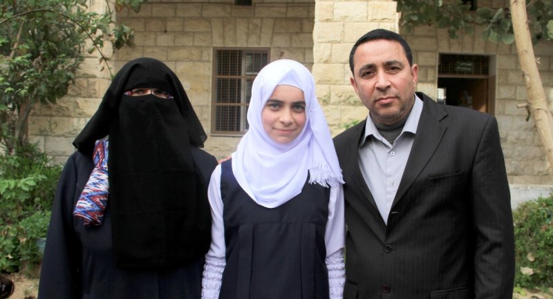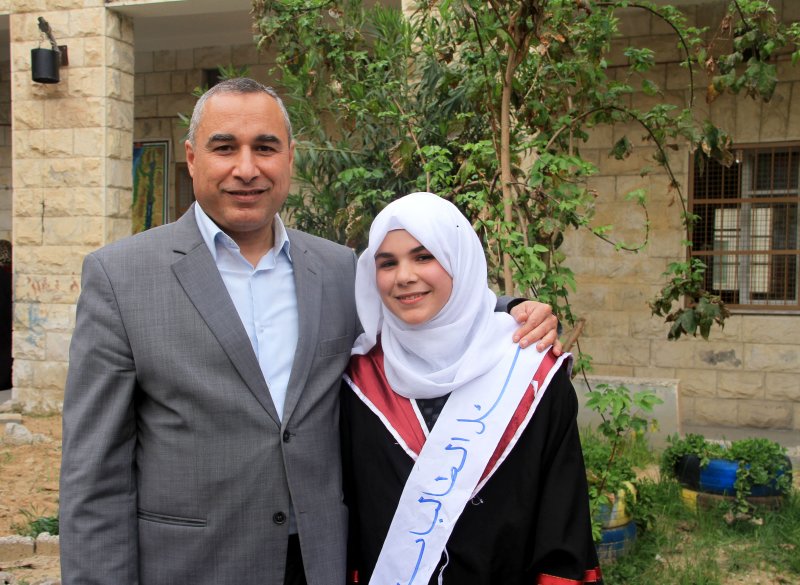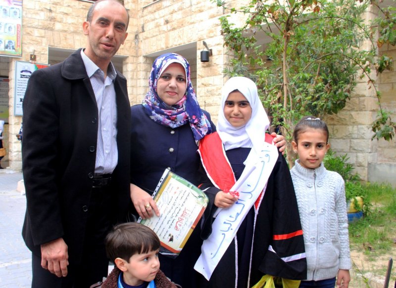 المتفوقة سارة محمد عبد الغفور ووالدها ووالدتها نهى فؤاد الأغا