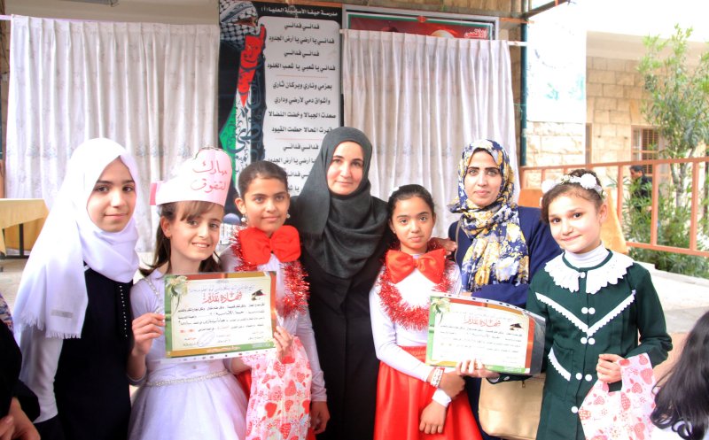 خان يونس - البلد - يوم السبت الموافق 12-3-2016 نظمت إدارة وأسرة مدرسة حيفا الأساسية(أ) للبنات احتفالاً لتكريم كوكبة من طالباتها المتفوقات ،وذلك بحضور كل من الأستاذ عيسى الأسطل رئيس قسم التعليم العام بمديرية خان يونس ، والأستاذ محمد حمدي الأغا رئيس شعبة الإرشاد التربوي بمديرية خانيونس ، والمشرف التربوي الأستاذ أيمن أبو الوفا ، والأستاذ عارف أبو ستة من قسم الرقابة ، والمهندس حسام الزطمة ، وعددا من أولياء أمور الطالبات ، وقد تخلل الحفل عدد من الفقرات منها : آيات من الذكر الحكيم فالسلام الوطني، ثم ألقت مديرة المدرسة الأستاذة ناريمان الأغا كلمة رحبت فيها بالضيوف الكرام وأثنت على جهود كل من مديرية التربية والتعليم في خان يونس وجهود إدارة المدرسة والمعلمات وأولياء الأمور والتي ساهمت في تفوق الطالبات ، وقدمت التهاني للطالبات المتفوقات ولذويهن ، ثم ألقى المشرف التربوي الأستاذ أيمن أبو الوفا كلمة المديرية، ومن ثم كانت كلمة أولياء الأمور ، وتخلل الحفل أيضا عرض كشفي ومسرحية هادفة ومسرح الدمى لحوار بين العلم والجهل ، واستعراضات من طالبات الصف السادس ، وقد تم خلال الاحتفال تكريم عدد من المؤسسات الداعمة وبعض العاملين في المديرية ، وتم تكريم الطالبات المتفوقات وتوزيع شهادات التقدير والجوائز عليهن .متفوقات العائلة : هيا مؤنس الأغا –شهد محمد الأغا – رهف محمد الأغا – بنان إياد الأغا – بتول الأغا – ديما رأفت الأغا - لبنى رأفت الأغا.