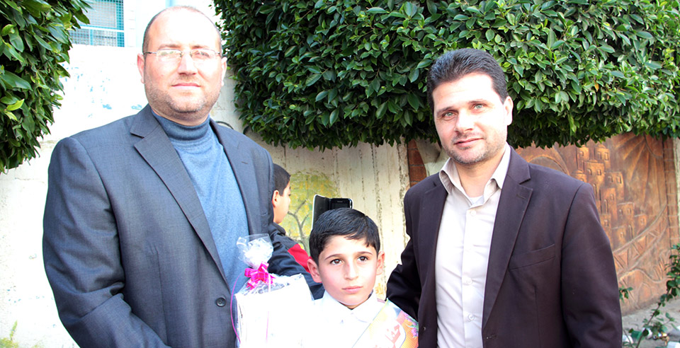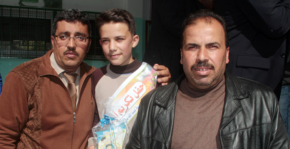 أ. سعيد شبير ونجله المتفوق محمد، أ. أحمد الجعبري مدير المدرسة