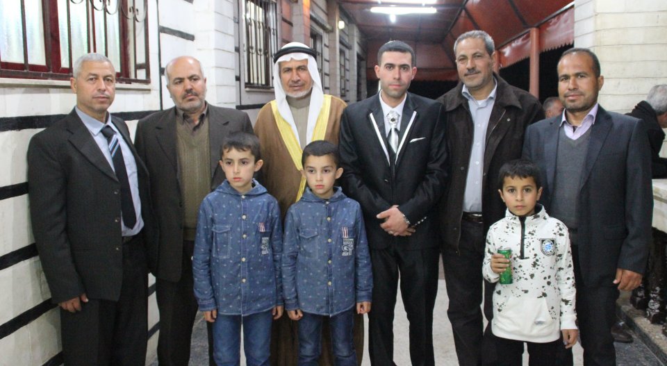 السادة: أسامة أحمد، أيمن أحمد، أشرف أحمد، م. عودة محمد، العريس، أ. بيان أحمد، أ. نبيل أحمد، أ. محمد اللحام(عم العروس)، والد العريس
