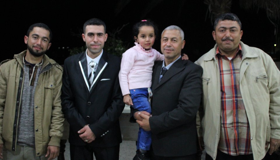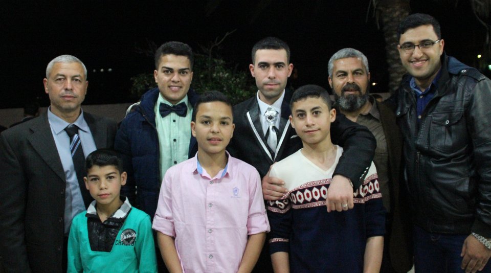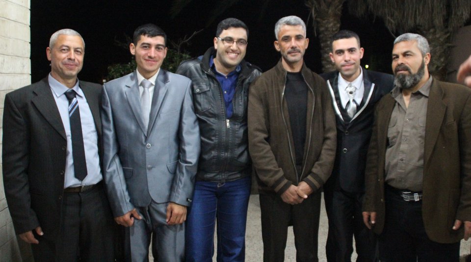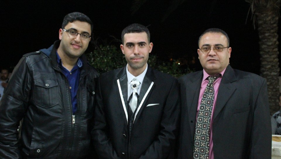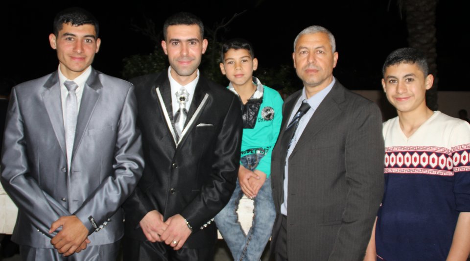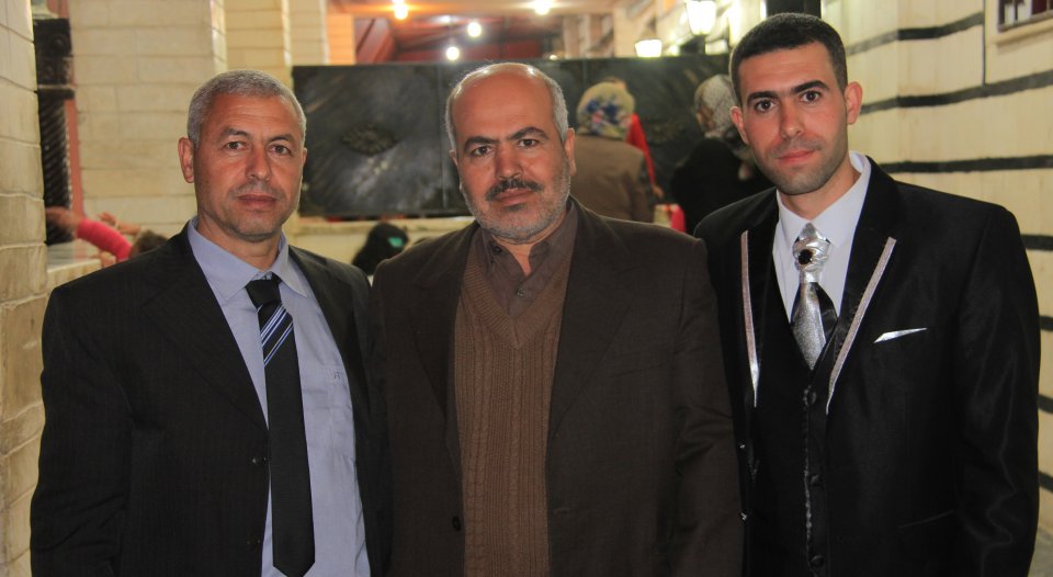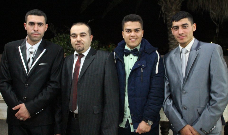 السادة: محمد يوسف الأغا، نزيه يوسف(والد العريس)، م. عودة محمد، العريس، م. ناهض يوسف الأغا