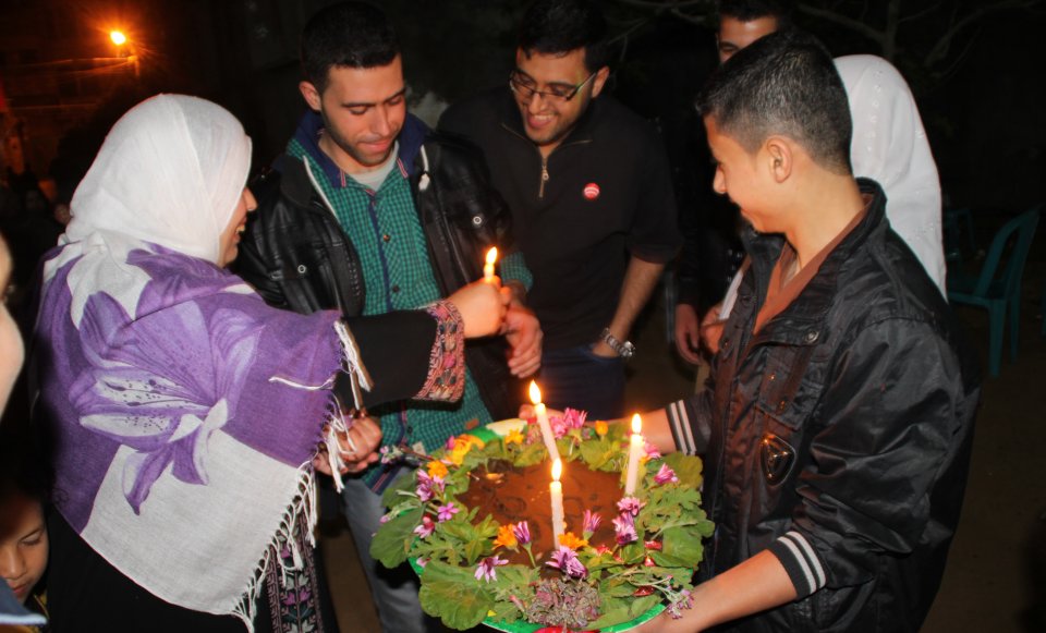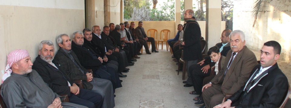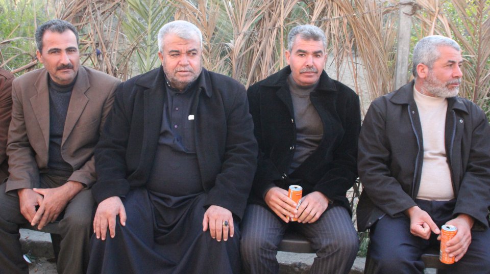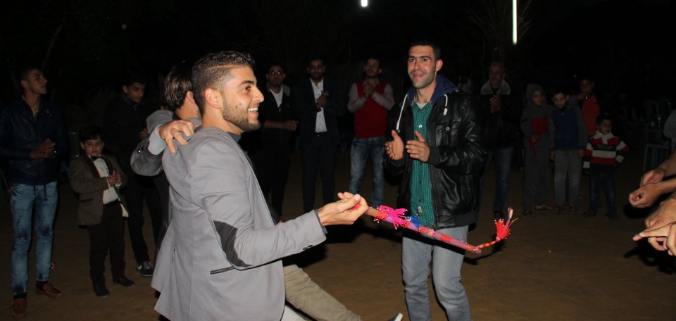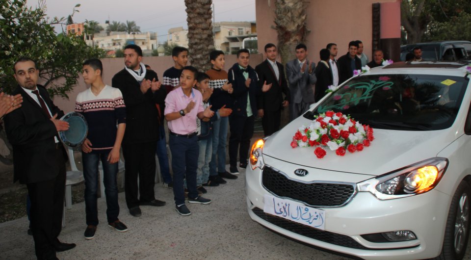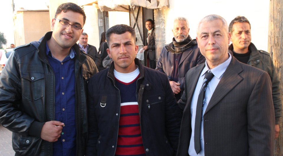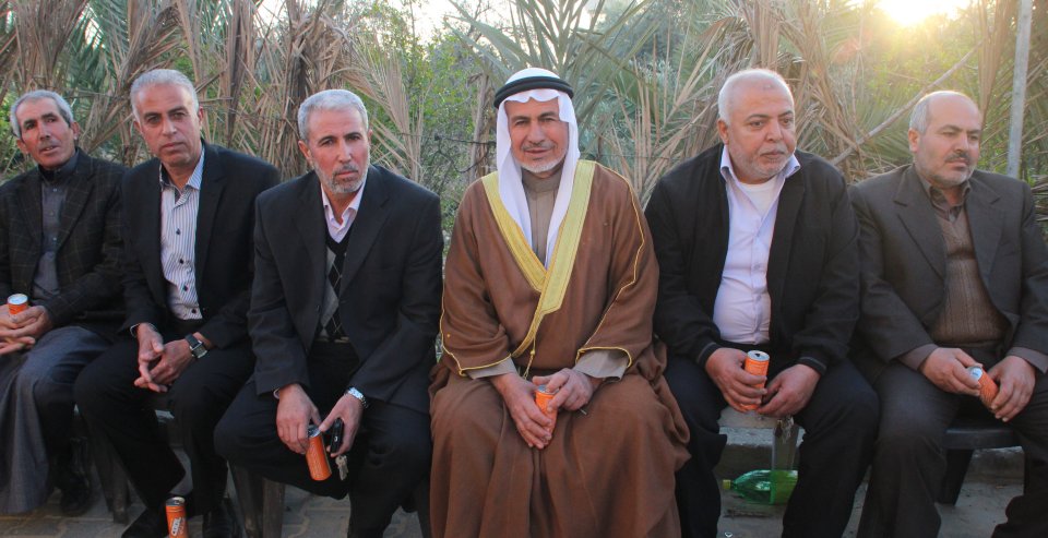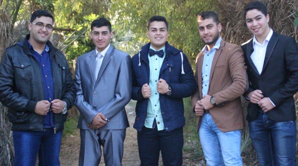 السادة: محمد يوسف الأغا، نزيه يوسف(والد العريس)، م. عودة محمد، العريس، م. ناهض يوسف الأغا