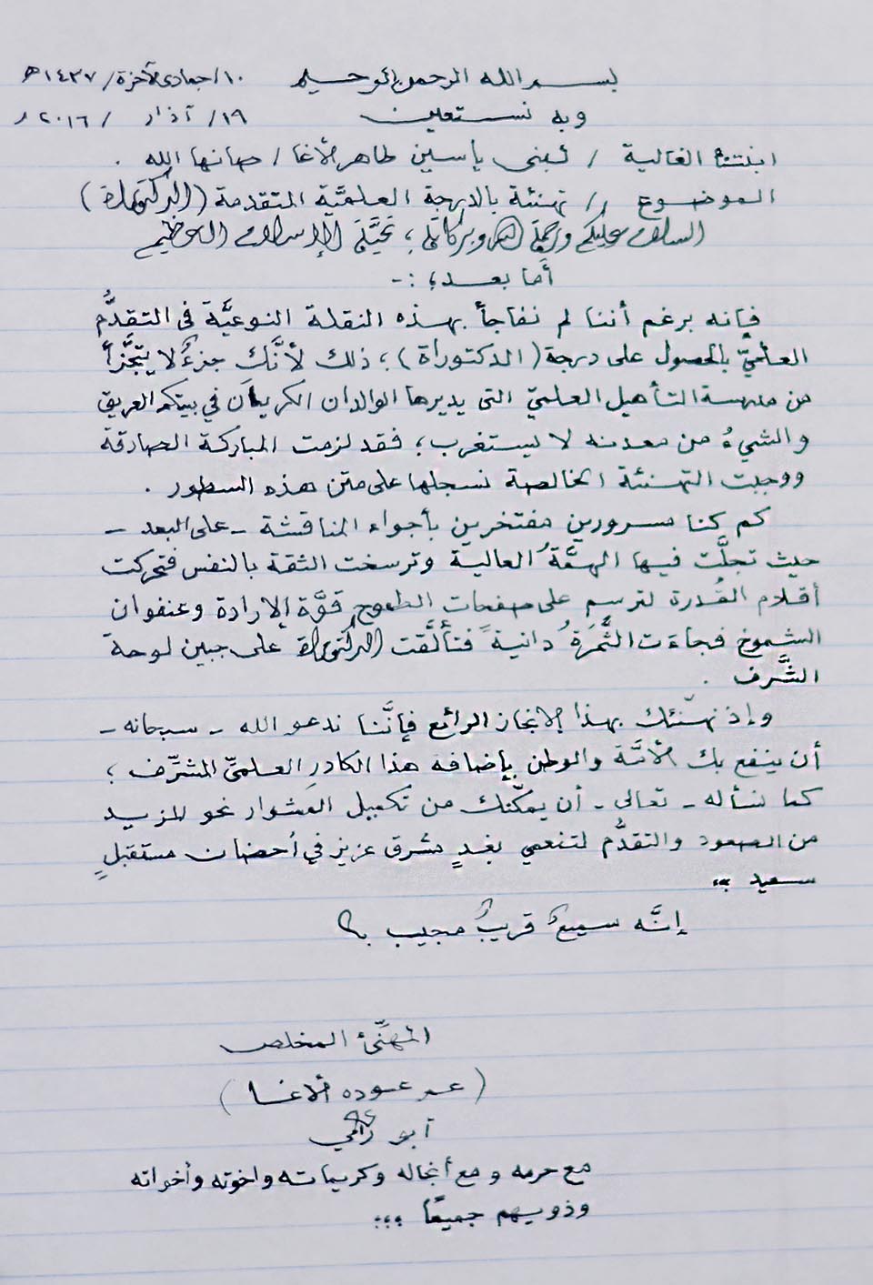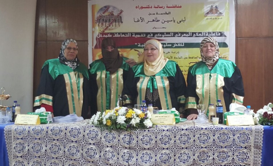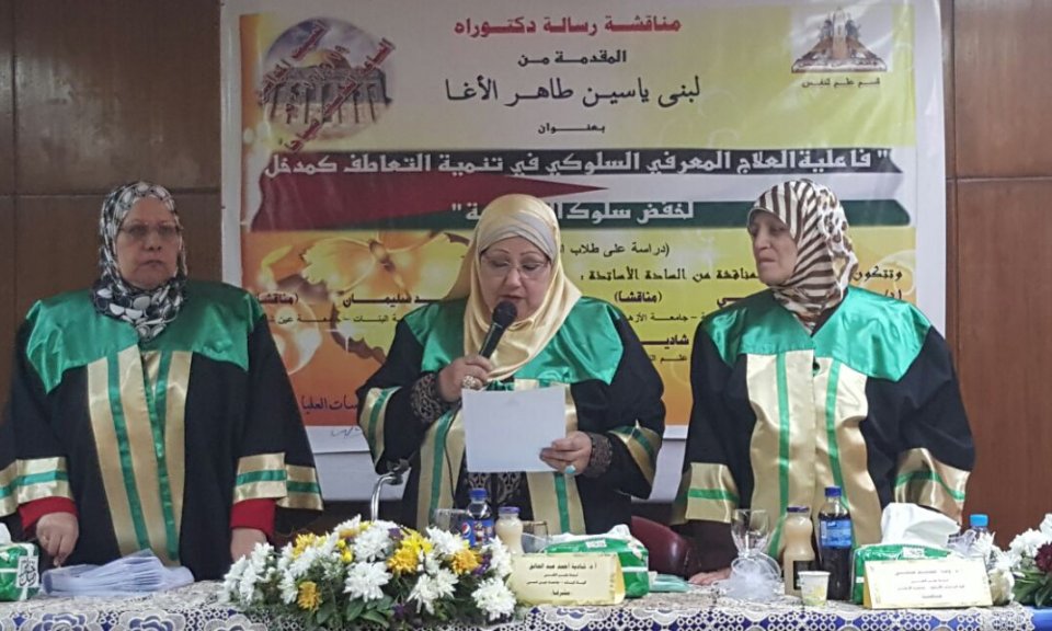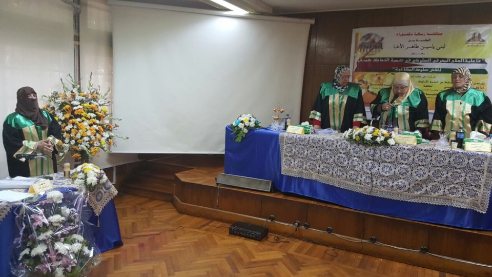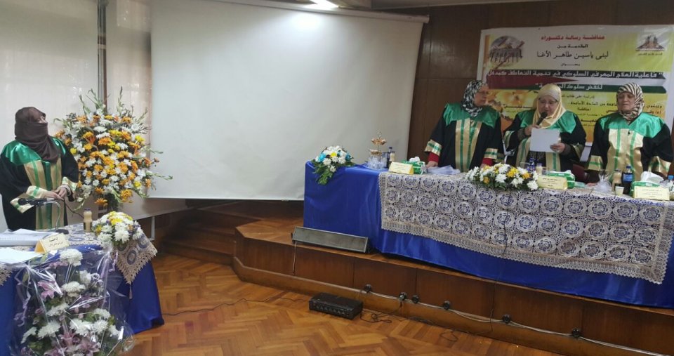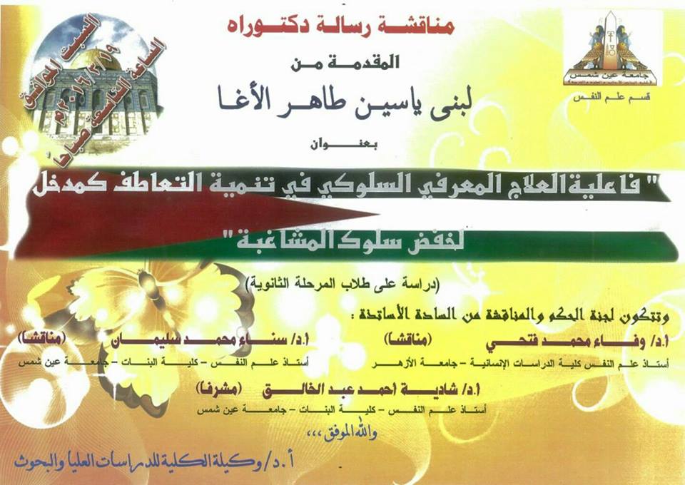 حصول الباحثة لبنى ياسين طاهر الاغا على درجة الدكتوراة من جامعة عين شمس ..بتقدير امتياز مع مرتبة الشرف الاولى و التوصية بالطبع و التداول بين الجامعات.
