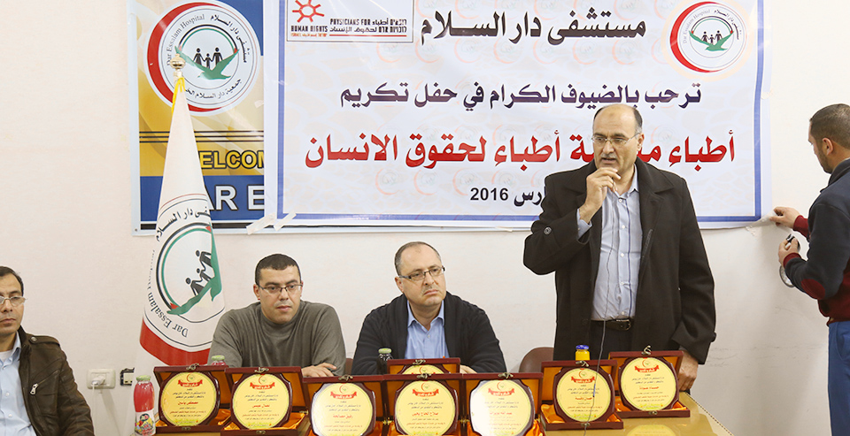 واستعرض د. الحاج المحطات التي بدأت معها منظمة أطباء لحقوق الإنسان لتقديم الخدمات الصحية للمواطن الفلسطيني والدفاع عن حقوقه الصحية أمام ما يتعرض له من انتهاكات قوات الاحتلال, حيث كانت البدايات منذ العام 1987 م , واللقاءات الأولى في غزة وبداية عملها الحقيقي استنادا للدفاع عن الحقوق العلاجية لأهلنا في غزة والضفة المحتله ورصد الانتهاكات, مشيرا إلى دور المنظمة في رصد وتوثيق جرائم الحرب التي أرتكبت في غزة خلال الحروب الثلاث وذلك بتواجد فريق المنظمة في مستشفيات قطاع غزة وتقديم المساعدة مع الكوادر الطبية المحلية بالتعامل مع العديد من الاصابات الصعبة والخطيرة , وقد تم اعداد العديد من التقارير التي رفعت لمنظمات وهيئات دولية بالتنسيق مع المؤسسات الحقوقية في غزة.
