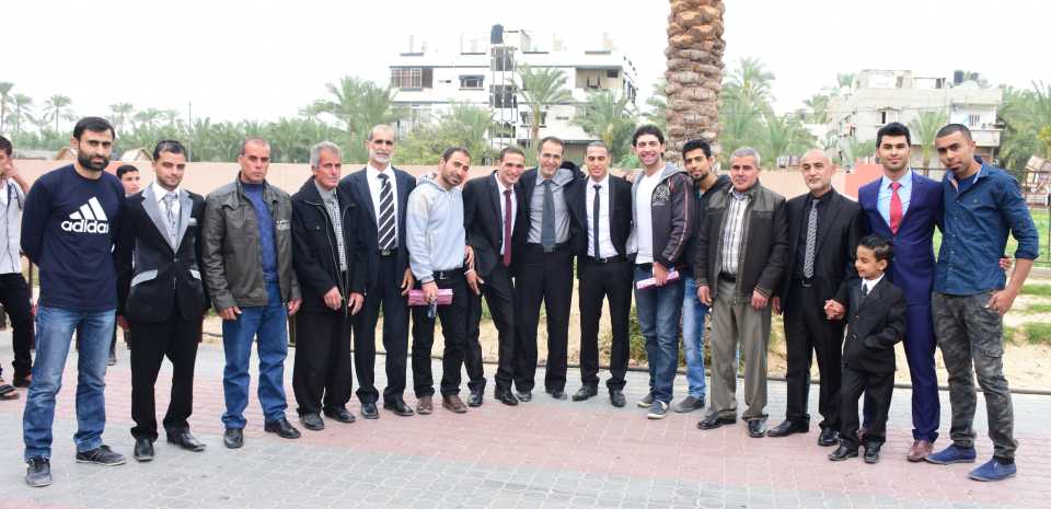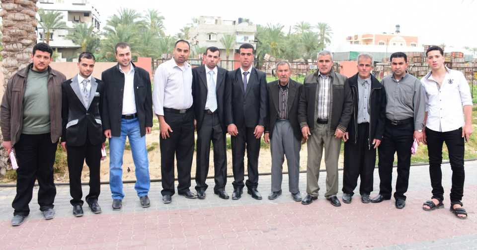 ابو منصور الاسطل، محمد فوزي الأغا، والد العروس، وابن شقيقته أ.بلال باسم الاغا، اشرف عبدالله الاغا وابنه ايسر، أحمد انور الأغا،