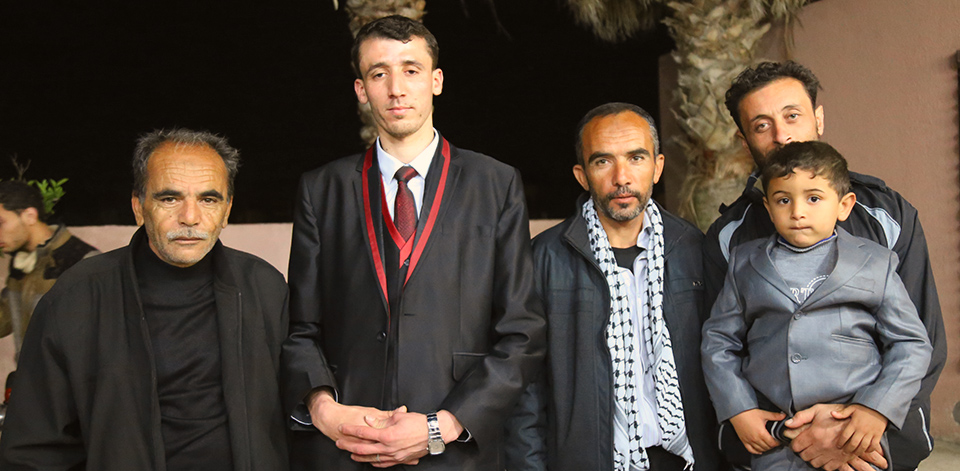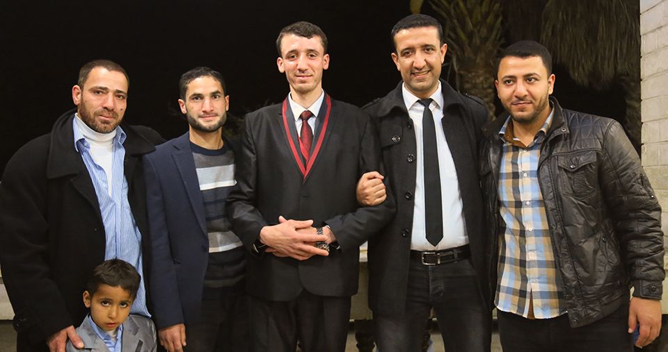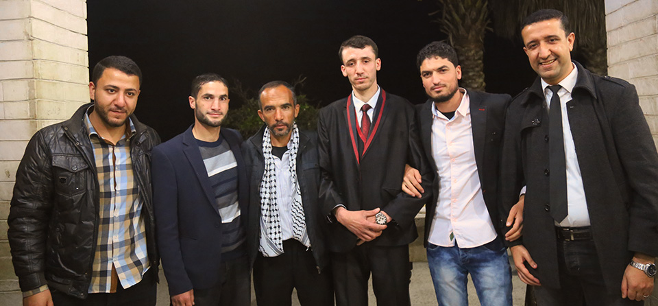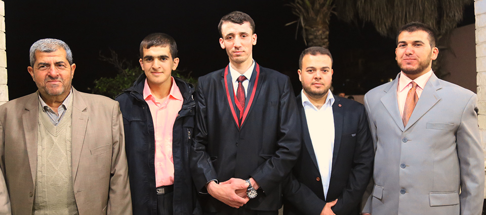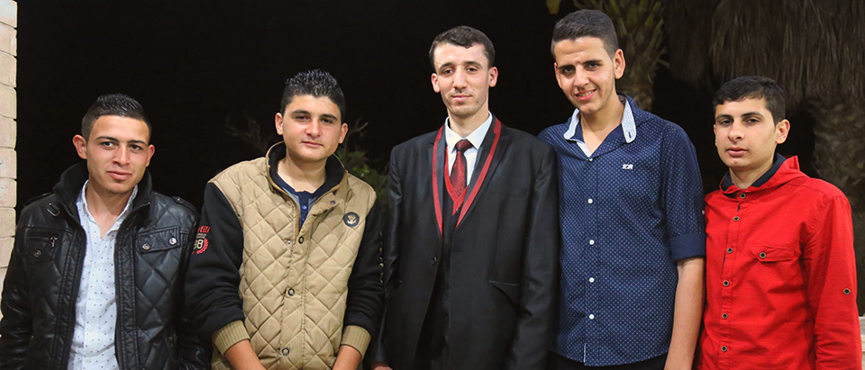محمود العبادلة(زوج شقيقة العريس)، أ.علاء خميس، العريس، أ.محمد فؤاد، بلال و ابراهيم (شقيقا العريس)