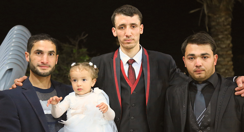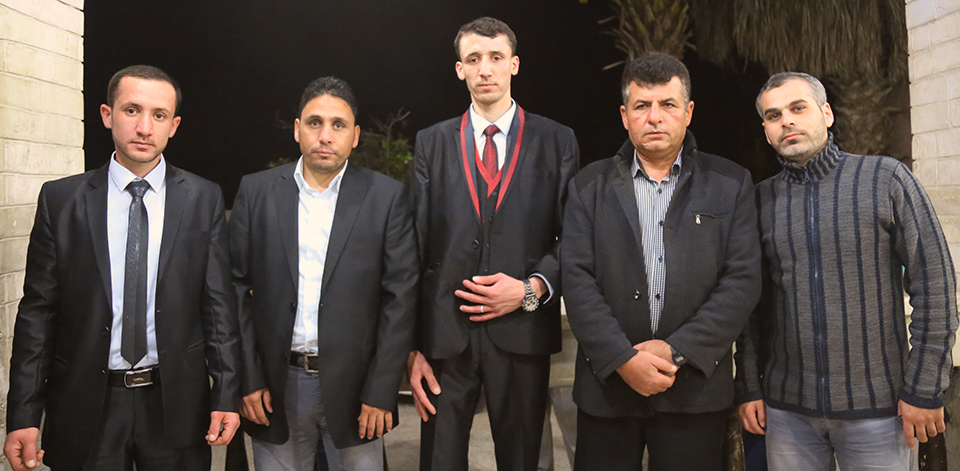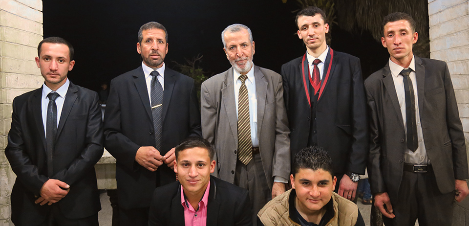 أ.اسماعيل خليل، أ.رفعت (عم العروس)، الحاج ابو خلدون الاغا، العريس، أ.عامر خليل، والد العريس