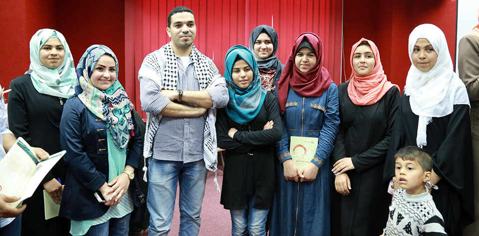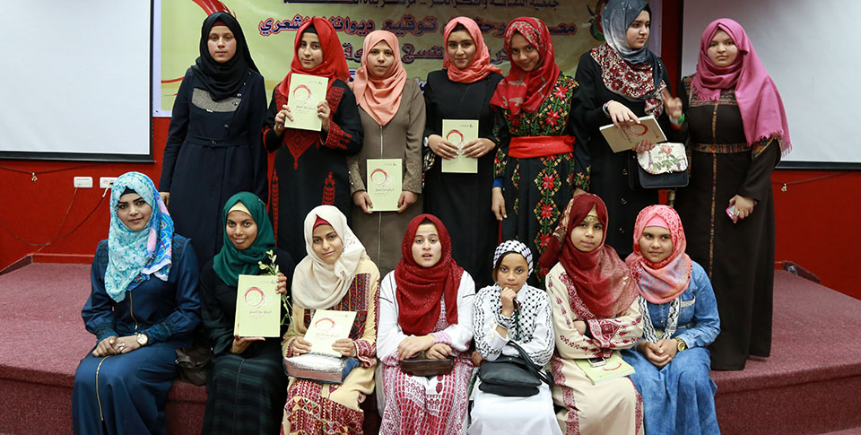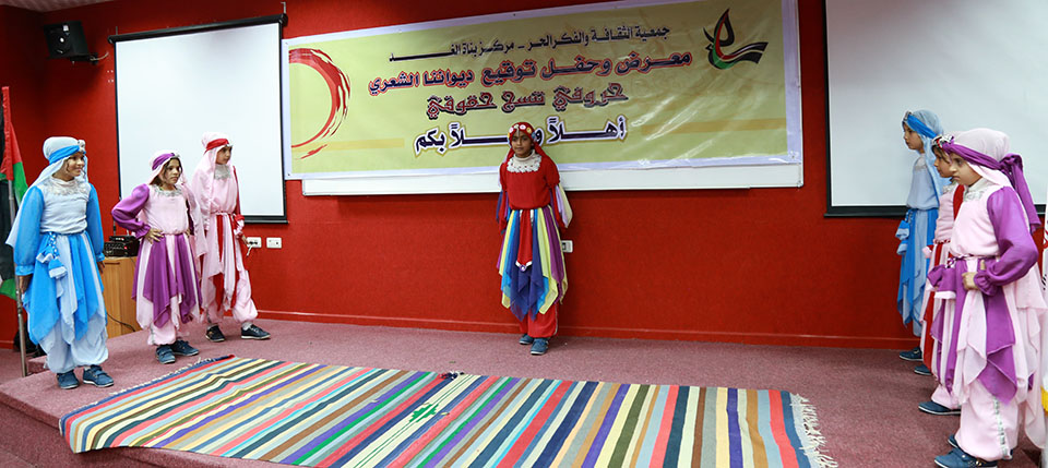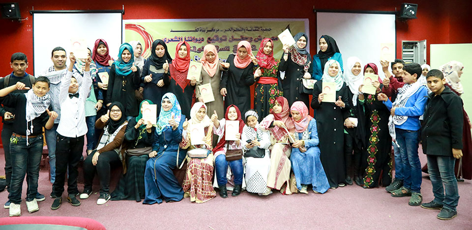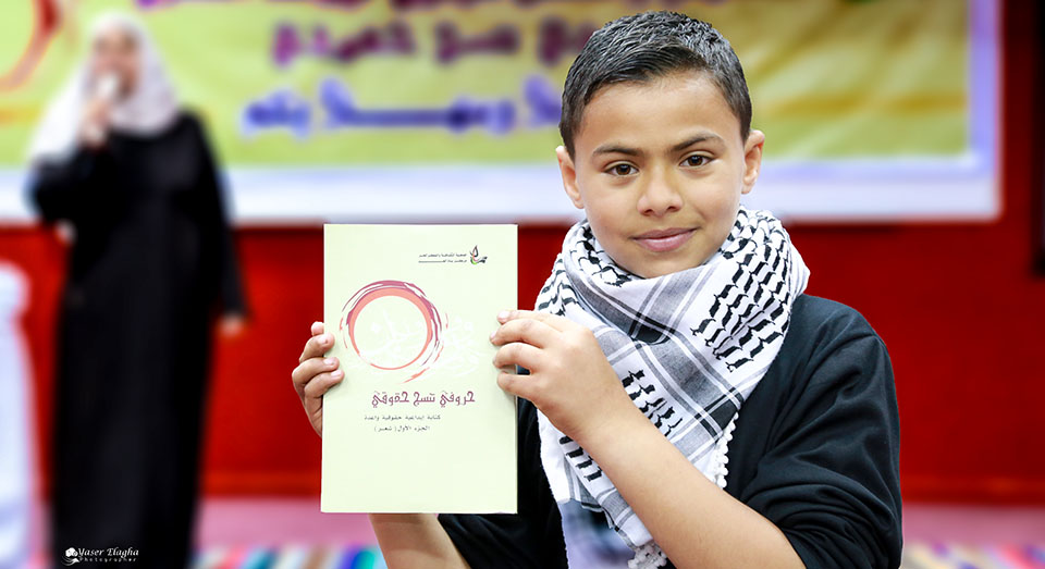 خان يونس- الأحد 04-04-2016 - مركز التدريب - وجهت 25 شاعرة في عمر الزهور حروف قصائدهن المغلفة بأحلامهم الطبيعية في العيش بسلام وأمان، والمكتوبة بمداد الالم والمعاناة ، والمعقبة برائحة البرود والدماء ، الى العالم الحر والمؤسسات الاممية ولاسيما الموسومة بحماية الطفولة، لتذكرهم بحقوق اطفال فلسطين المسلوبة والمغتصبة من قبل الاحتلال الإسرائيلي، حيث تشكلت تلك الحروف لتنسج حقوق اطفال عاشوا ويلات عشر سنوات من الحصار وثلاث حروب، بديوان شعرى حمل عنوان حروفي تنسج حقوقي ، ترجم فنيا بريشة فنانين وفنانات مركز بناة الغد ، وقعتها اناملهن الواعدة ، خلال حفل اطلاق المجموعة في مركز تدريب خان يونس جنوب قطاع غزة ، بحضور لفيف من المثقفين والشعراء والفنانين وقيادات تربوية وتعليمية من التعليم ، والأهالي وجمهور غفير ، على شرف يوم الطفل الفلسطيني ، والذى يوافق السادس من ابريل من كل عام .