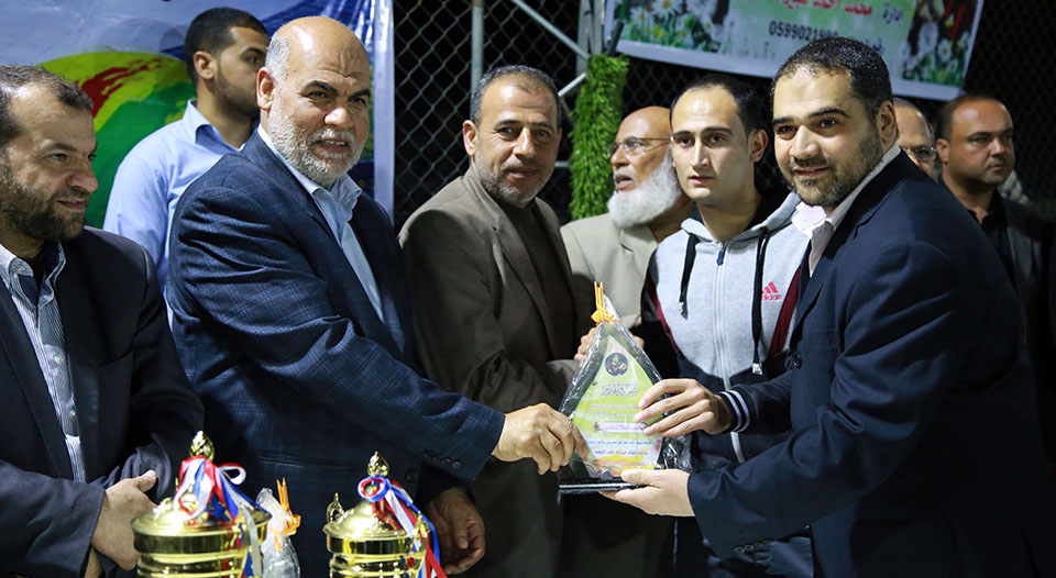 بحضور معالي وكيل وزارة الشباب والرياضة أ.احمد محيسن ، ومن خلال كلمة له وجهة الشكر إلي إدارة الملعب ومديرية الشباب والرياضة خان يونس التي قامة بدور أشرافي علي البطولة.
