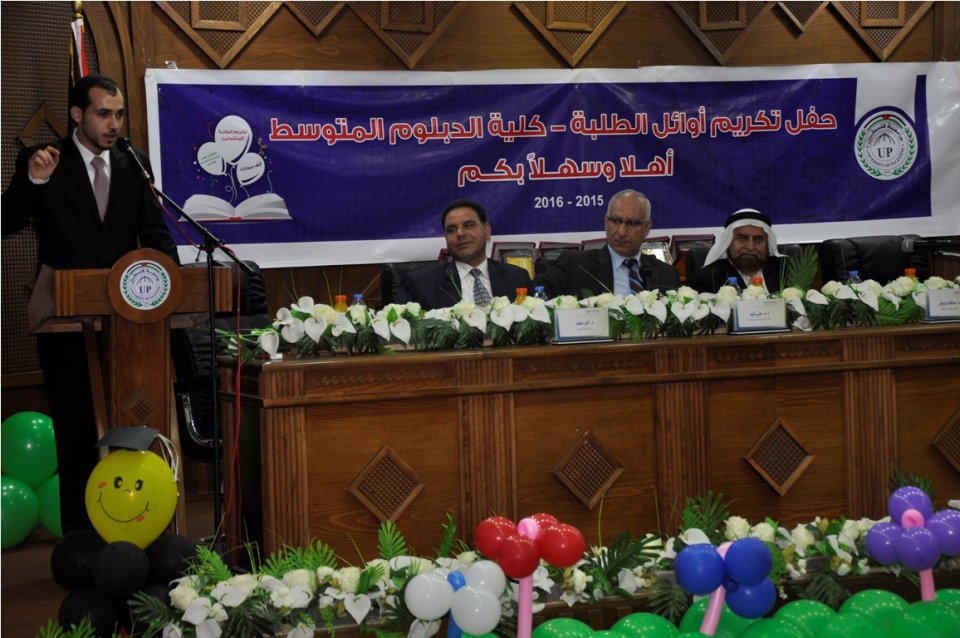 كلية الدراسات المتوسطة بجامعة فلسطين تكرم الطلبة المتفوقين
