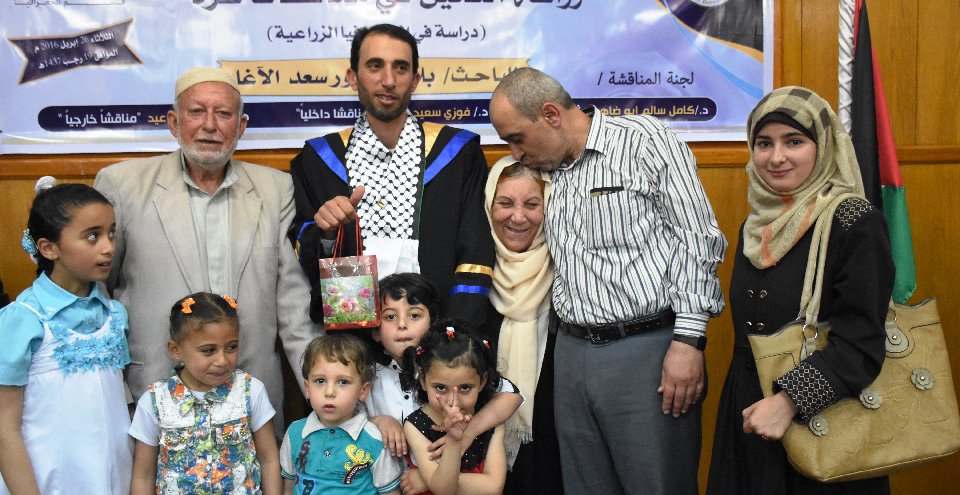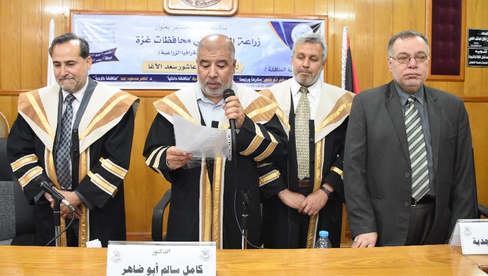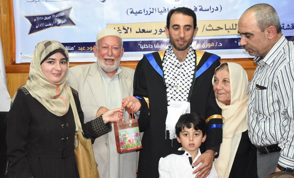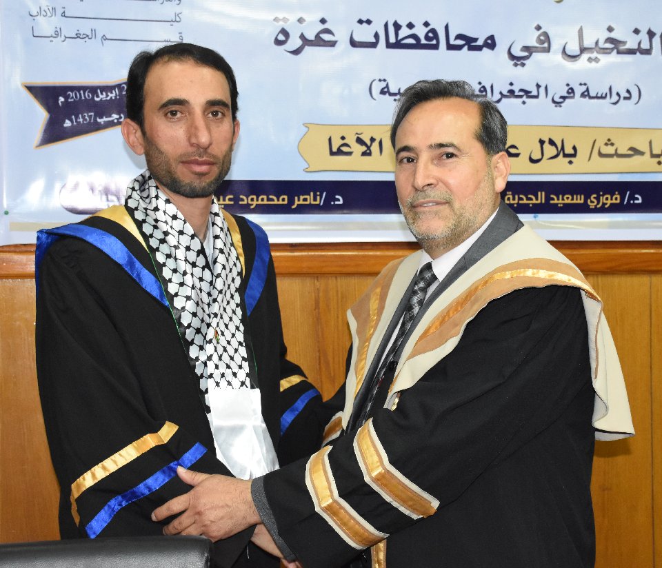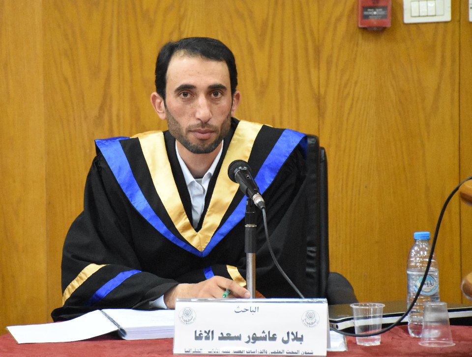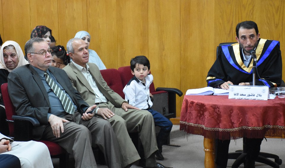 غزة- الجامعة الاسلامية - مبنى القدس - الثلاثاء 26-04-2016- حصول الباحث بلال عاشور سعد الأغا