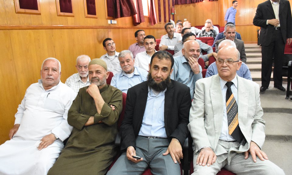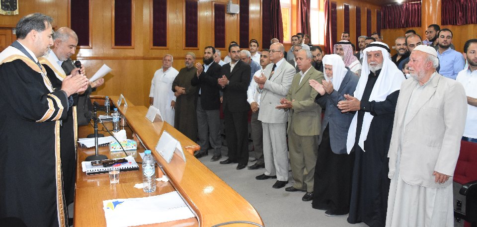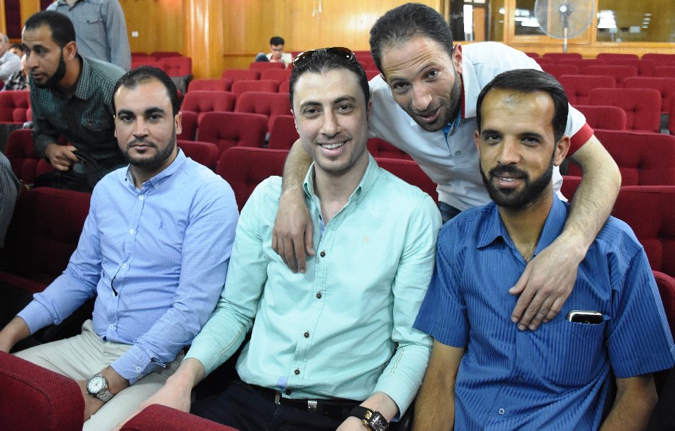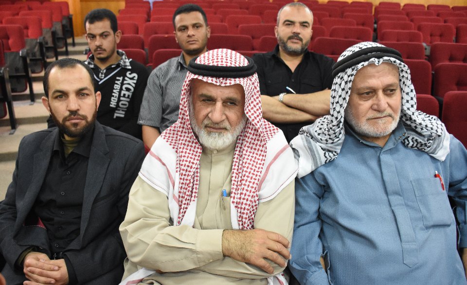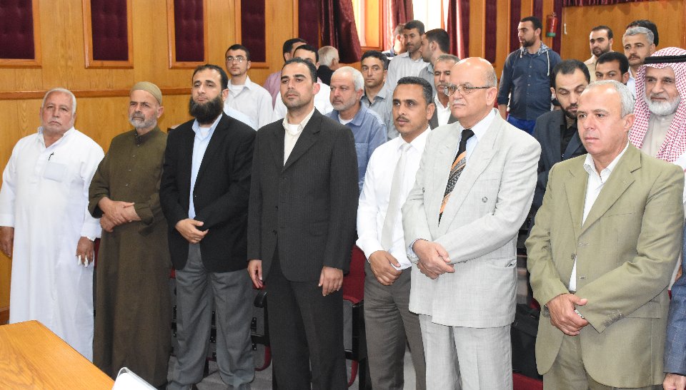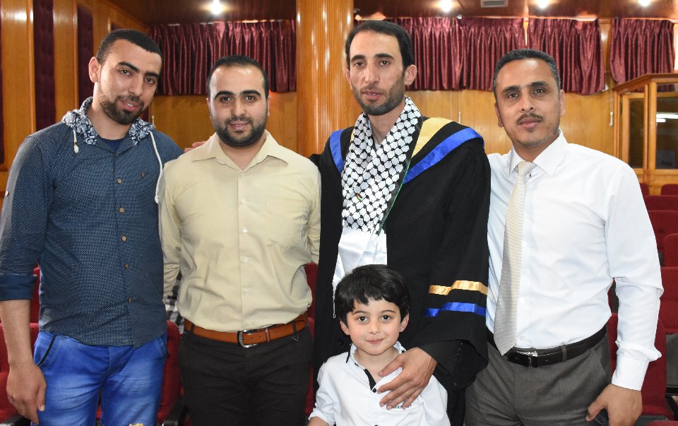 الباحث برفقة لجنة المناقشة والحكم وبحضور أ. د. محمد رمضان الاغا