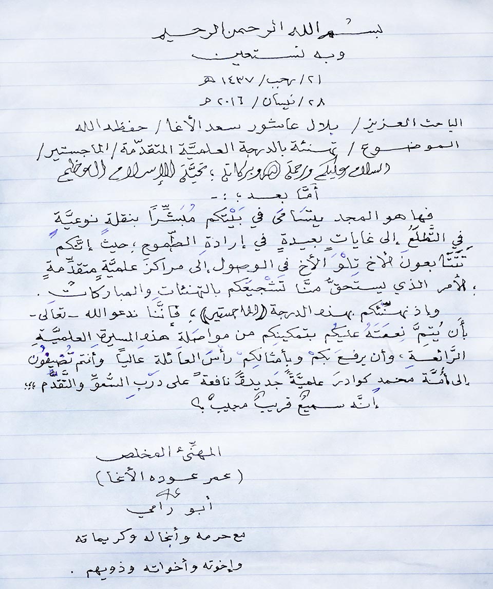 هدية من ابنة شقيق الباحث هالة حسام الاغا