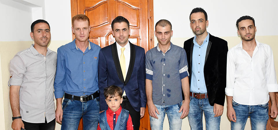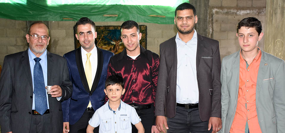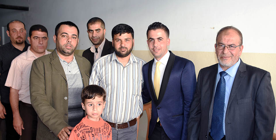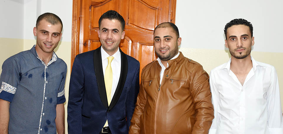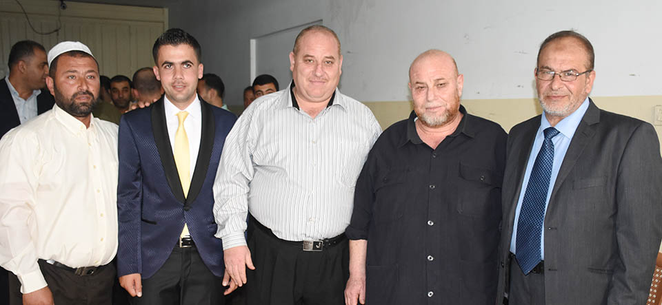 أ. يحيى سليمان، والد العروس، العريس، أ. مصطفى يوسف، والد العريس، أ. إياد مصطفى يوسف، أ. رائف سليمان