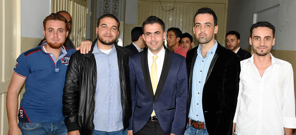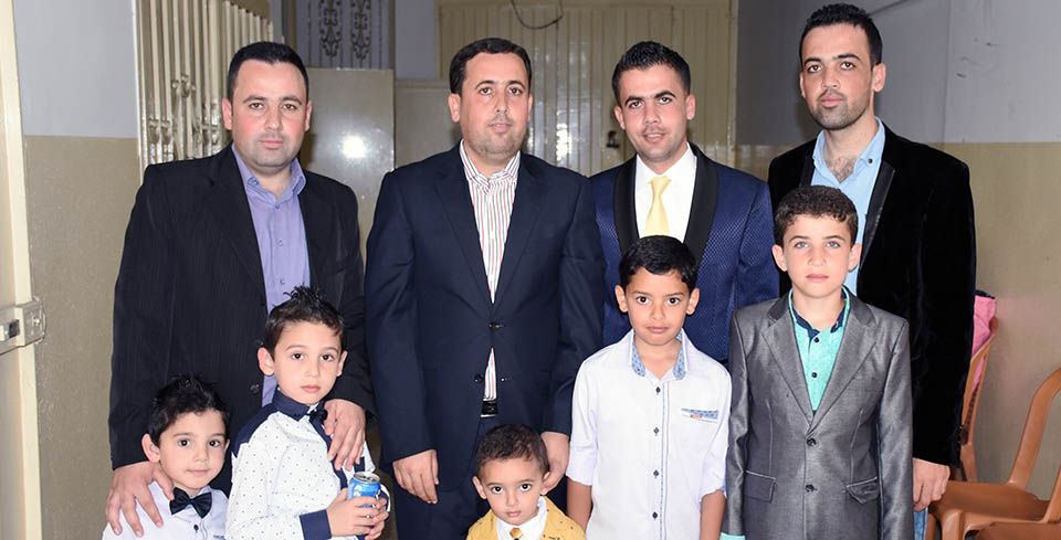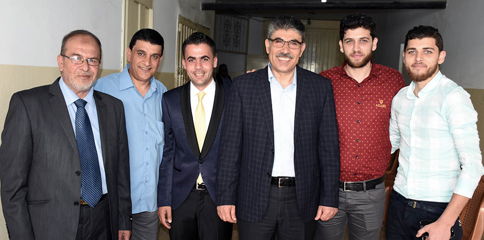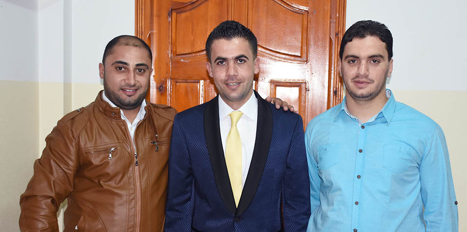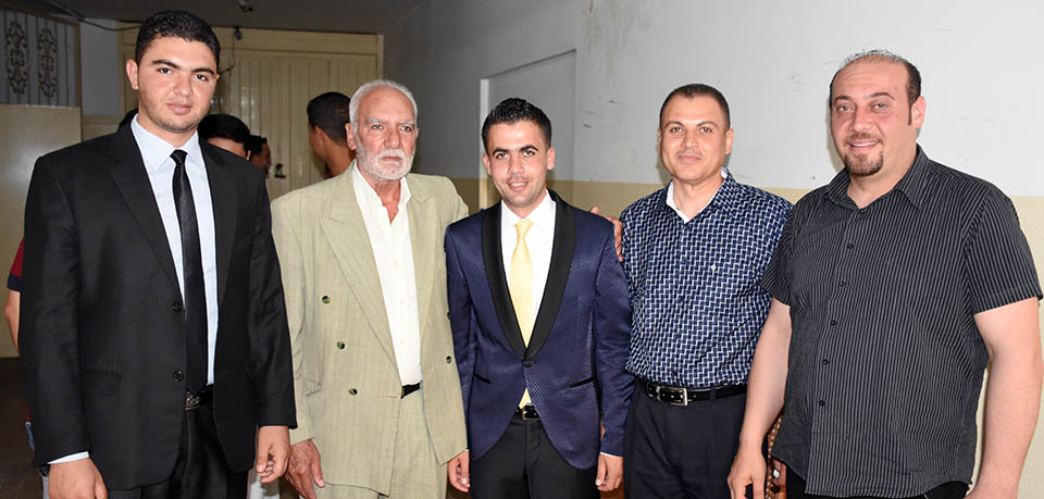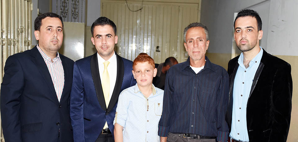 والد العروس، العريس، أ. صائب لقان ونجله يوسف، أ. محمد عبدالحميد،