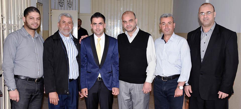 معتصم النجار(خزاعة)، أ. محمد حيدر موسى أحمد حمدان شعت، العريس، أ. زايد أبوجزر(وزارة المالية غزة)، أ. حسين أبوحجاج(البنك الاسلامي الفلسطيني)