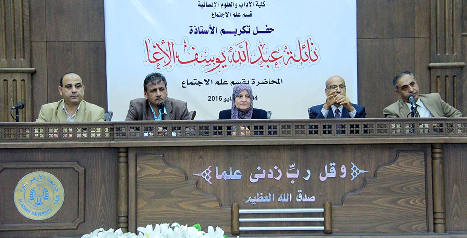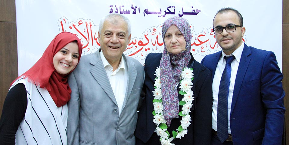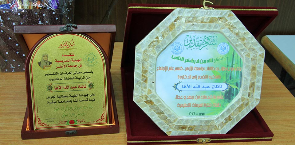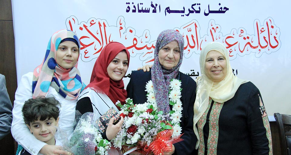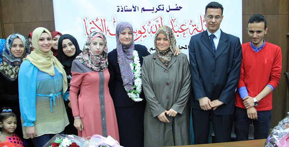 كرمت كلية الأداب بجامعة الأزهر-غزة الأستاذة نائلة الأغا عضو هيئة التدريس ، لبلوغها السن القانونية للتقاعد، وذلك تقديرًا للمجهود الذي بذلته في سبيل خدمة المسيرة التعليمة في الجامعة، ودورها الفاعل في تنشئة وتعليم الطلبة، جاء ذلك خلال حفل أجري بقاعة هاني الشوا يوم الأربعاء الموافق 04-05-2016 ، بحضور الأستاذ الدكتور سامي مصلح نائب الرئيس للشئون الأكاديمية،والدكتور محمد صلاح أبو حميدة عميد كلية الآداب و العلوم الإنسانية والأستاذة نائلة الأغا المحتفى بها وأعضاء الهيئة التدريسية بقسم علم الإجتماع، والدكتور محمد عبد الواحد رئيس مجلس نقابة العاملين بالجامعة، وعائلة الأستاذة ولفيف من الطلبة .
