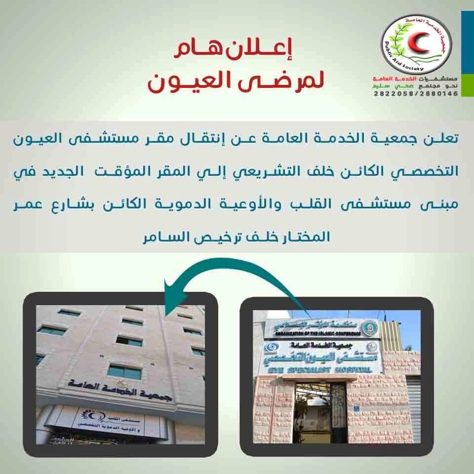 الرئيسة/صحة/إعلان- إنتقال مقر مستشفى العيون التخصصي صحة إعلان- إنتقال مقر مستشفى العيون التخصصي تاريخ النشر : الإثنين | 09-05-2016 | 21:11 5220 يمكنك تلقي أحدث الأخبار أول بأول بانضمامك لإحدى مجموعات الواتساب الخاصة بالعائلة من خلال الضغط هنـا اظهر المزيد