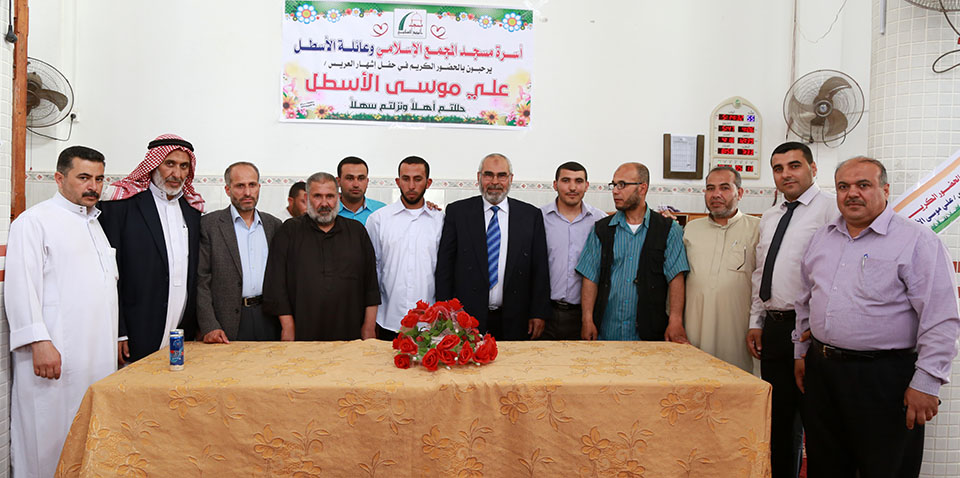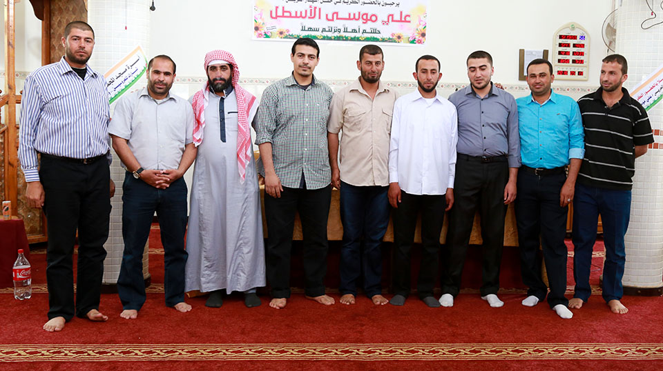 د.رامي البطة (عديل العريس)،د.يحيى زكريا الاسطل، أ. يحيى عبدالجواد، أسامةعاشور،أ.عيسى حامد الأسطل ،د.يوسف الاسطل، د.زكريا الأسطل،عبدالحكيم الاسطل ،د.اسماعيل محي الدين،أمين (خال العريس)،جمال الاسطل،أحمد (شقيق العريس)،قاسم الاسطل ،يوسف (شقيق العريس)، حمد زكريا،العريس،م.يحيى الأسطل(رئيس البلدية)،أ.ياسين الاسطل،عبدالكريم الأسطل